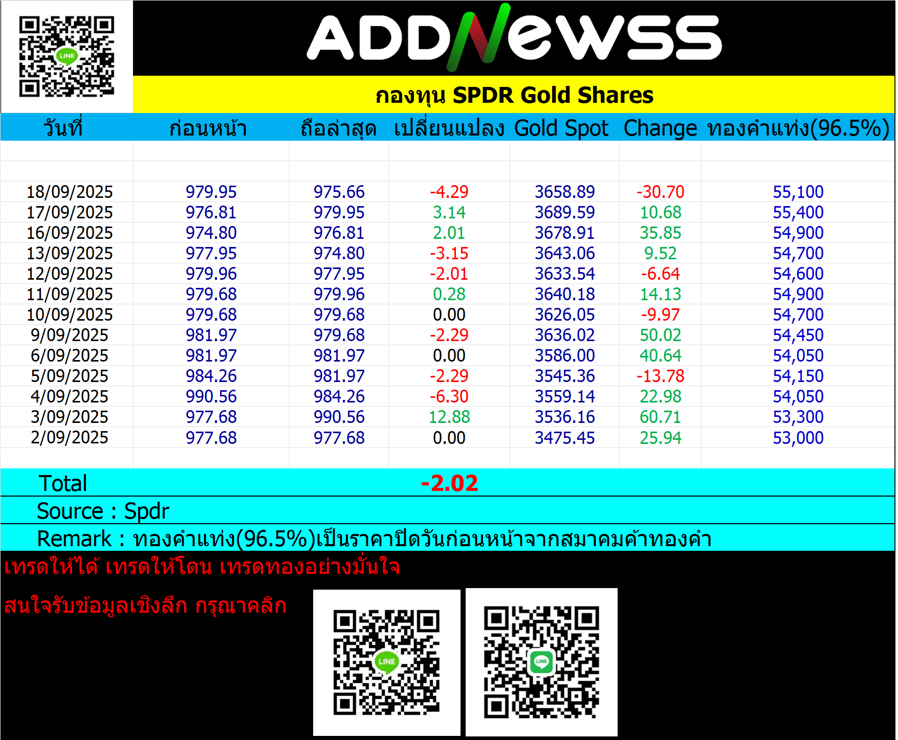 ยอดสะสม Spdr ประจำวันที่ 18 กันยายน 2025 📅 2025-09-18 06:54 ✎ bom999 🗇 Gold 👍 - แชร์โพสต์นี้ ยอดสะสม Spdr ย้อนหลังประจำเดือนสิงหาคม 2025 https://addnewss.news/post/68b244ee2c04d44a389036ce