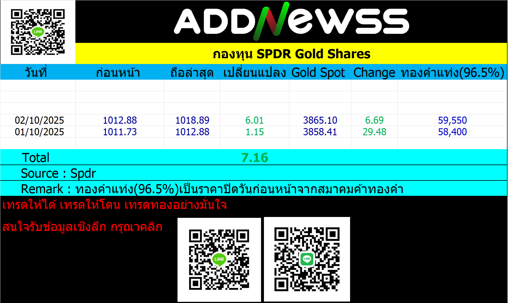 ยอดสะสม Spdr ประจำวันที่ 2 ตุลาคม 2025 📅 2025-10-02 07:10 ✎ bom999 🗇 Gold 👍 - แชร์โพสต์นี้ ยอดสะสม Spdr ย้อนหลังประจำเดือนกันยายน 2025 https://addnewss.news/post/68db1e83916829d3582a475d