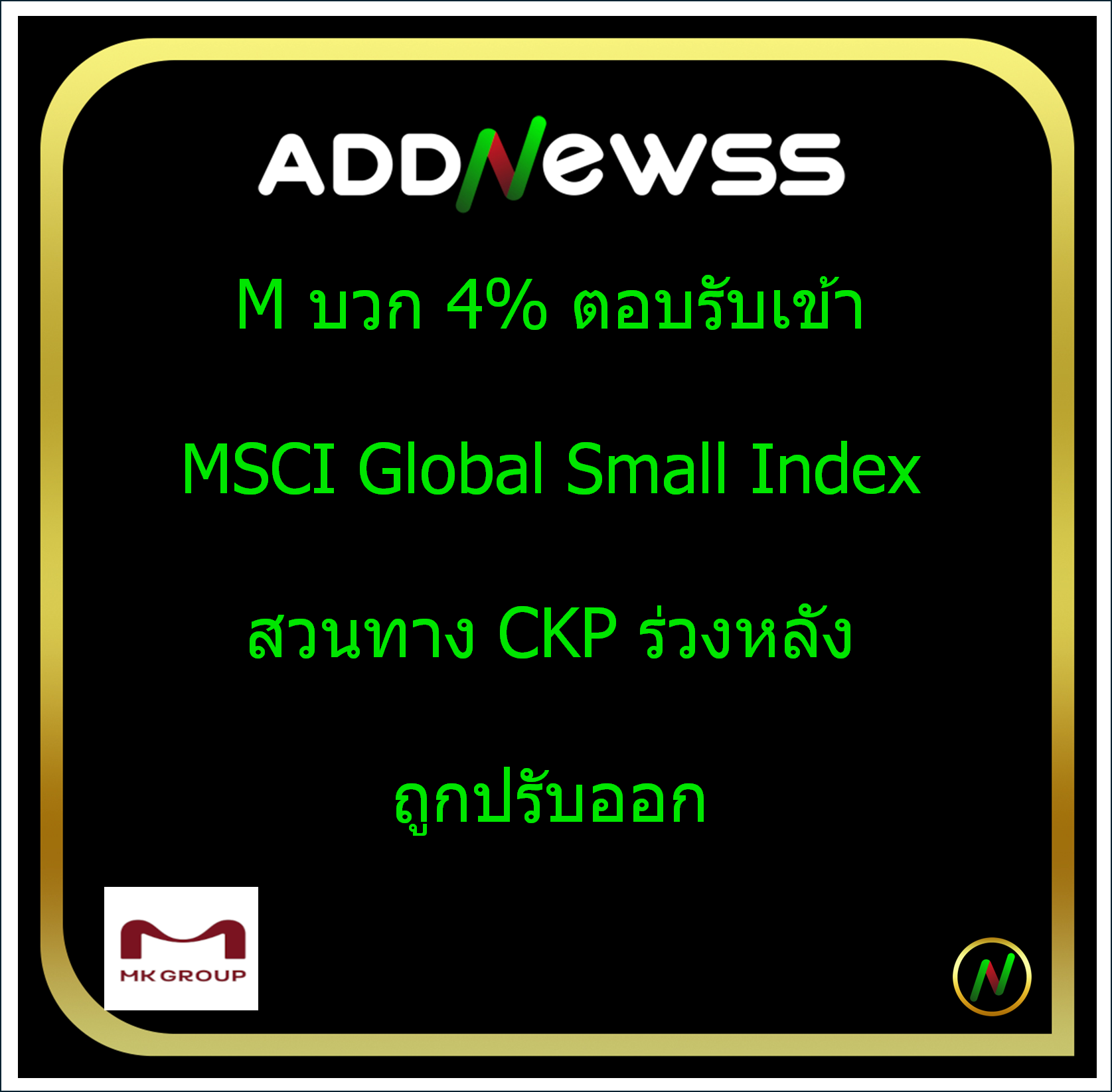 IQ > -M บวก 4% ตอบรับเข้า MSCI Global Small Index สวนทาง CKP ร่วงหลังถูกปรับออก