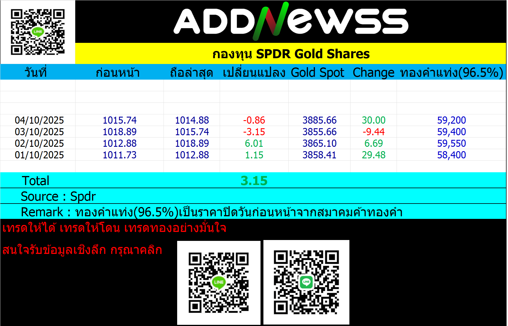 ยอดสะสม Spdr ประจำวันที่ 4 ตุลาคม 2025 📅 2025-10-04 10:32 ✎ bom999 🗇 Gold 👍 - แชร์โพสต์นี้ ยอดสะสม Spdr ย้อนหลังประจำเดือนกันยายน 2025 https://addnewss.news/post/68db1e83916829d3582a475d