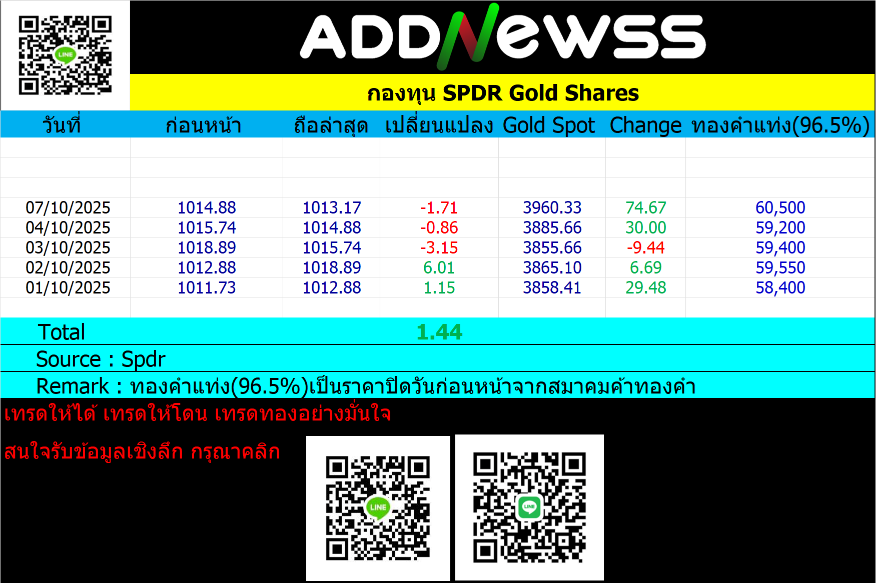 ยอดสะสม Spdr ประจำวันที่ 7 ตุลาคม 2025 📅 2025-10-07 07:53 ✎ bom999 🗇 Gold 👍 - แชร์โพสต์นี้ ยอดสะสม Spdr ย้อนหลังประจำเดือนกันยายน 2025 https://addnewss.news/post/68db1e83916829d3582a475d