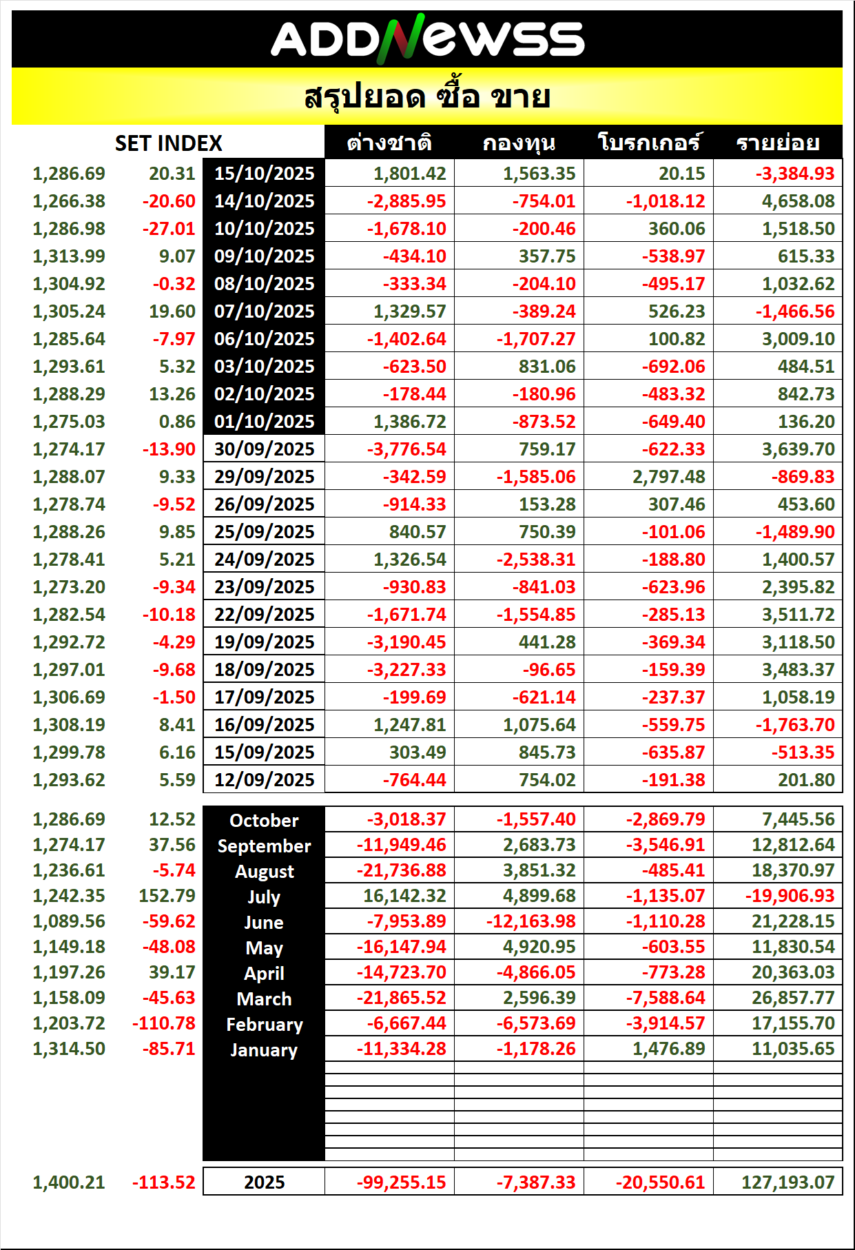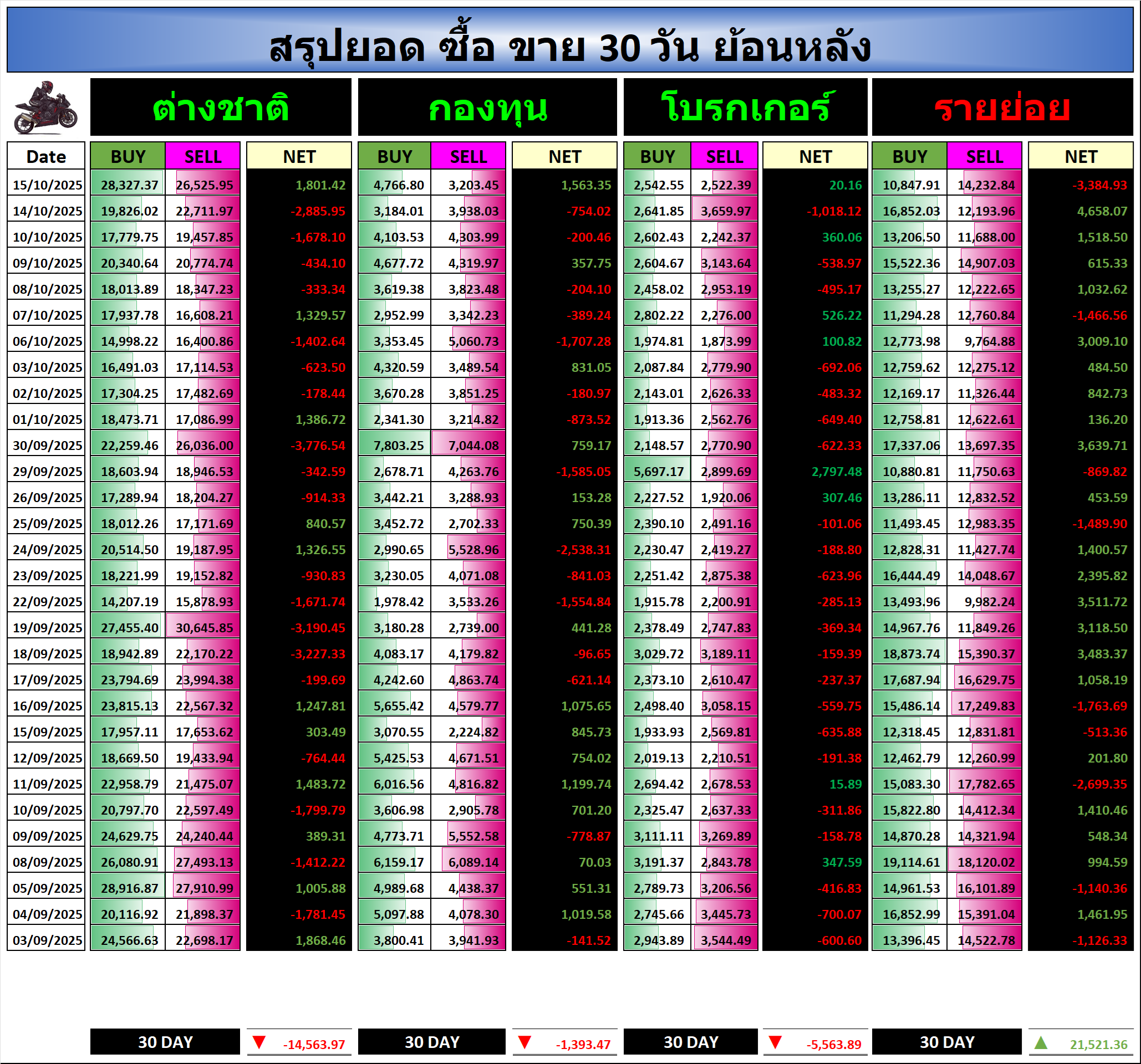 🔥🔥สรุปยอด ซื้อ ขาย🟢 🔴 15/10/2025