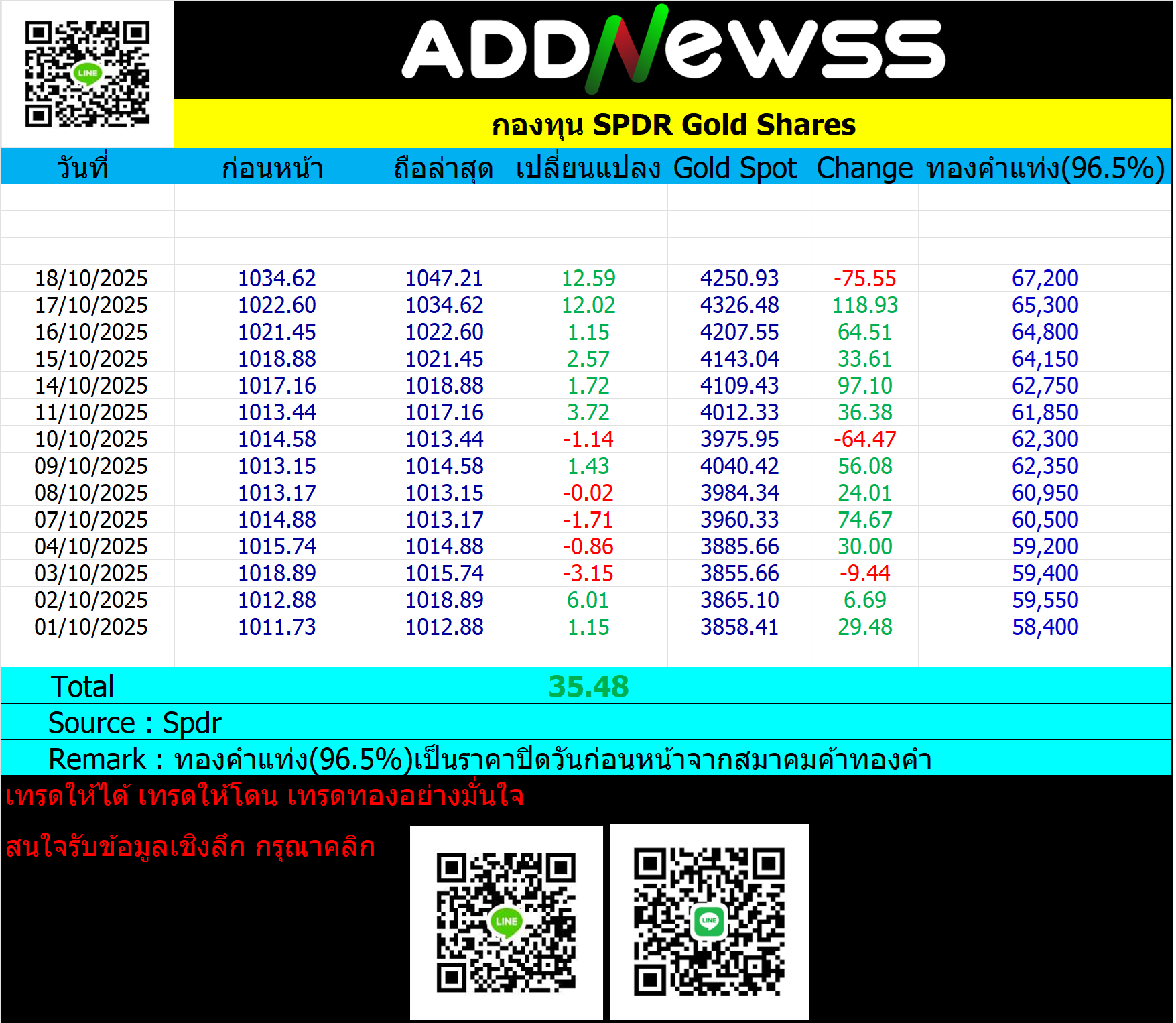 ยอดสะสม Spdr ประจำวันที่ 18 ตุลาคม 2025 📅 2025-10-18 10:01 ✎ bom999 🗇 Gold 👍 - แชร์โพสต์นี้ ยอดสะสม Spdr ย้อนหลังประจำเดือนกันยายน 2025 https://addnewss.news/post/68db1e83916829d3582a475d