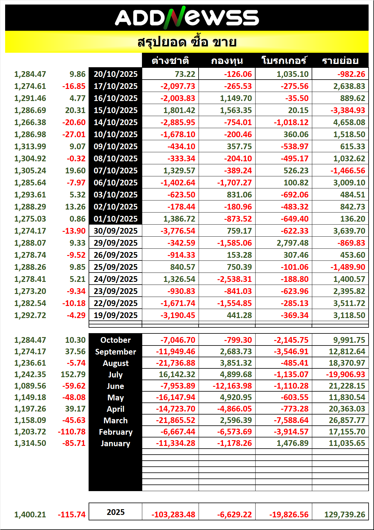 🔥🔥สรุปยอด ซื้อ ขาย🟢 🔴 20/10/2025