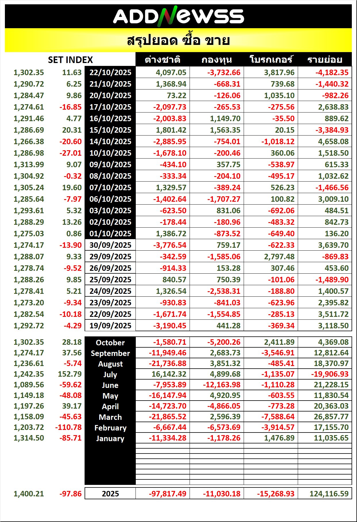 🔥🔥สรุปยอด ซื้อ ขาย🟢 🔴 22/10/2025