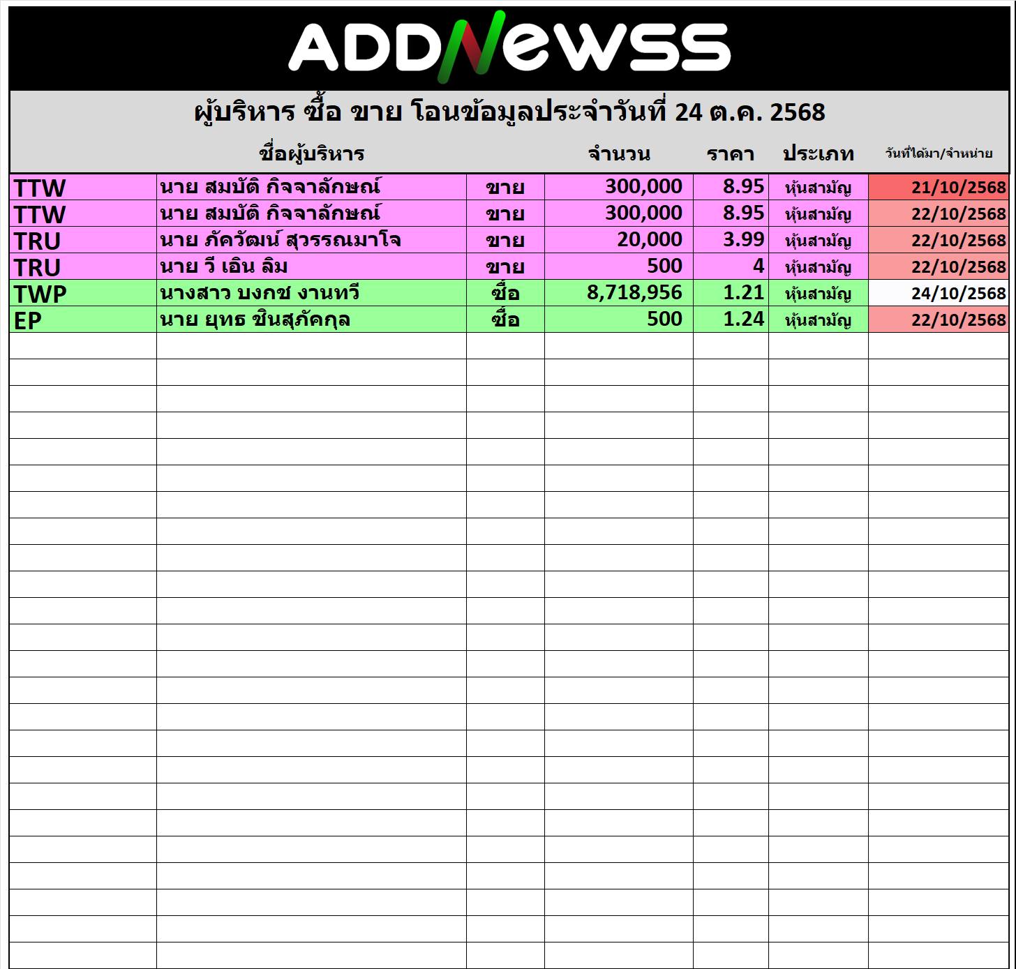 🔥🔥สรุปผู้บริหาร ซื้อ ขาย โอน  📅 วันรายงาน 24/10/2025