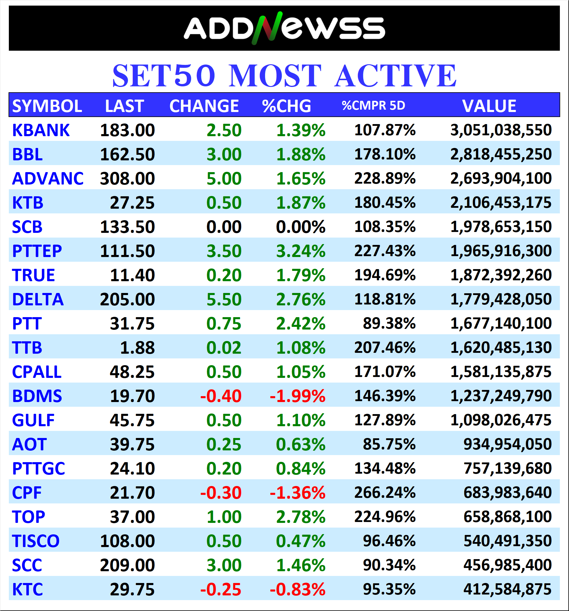 KBANK    : 🟢+2.50 ฿3,051,038,550