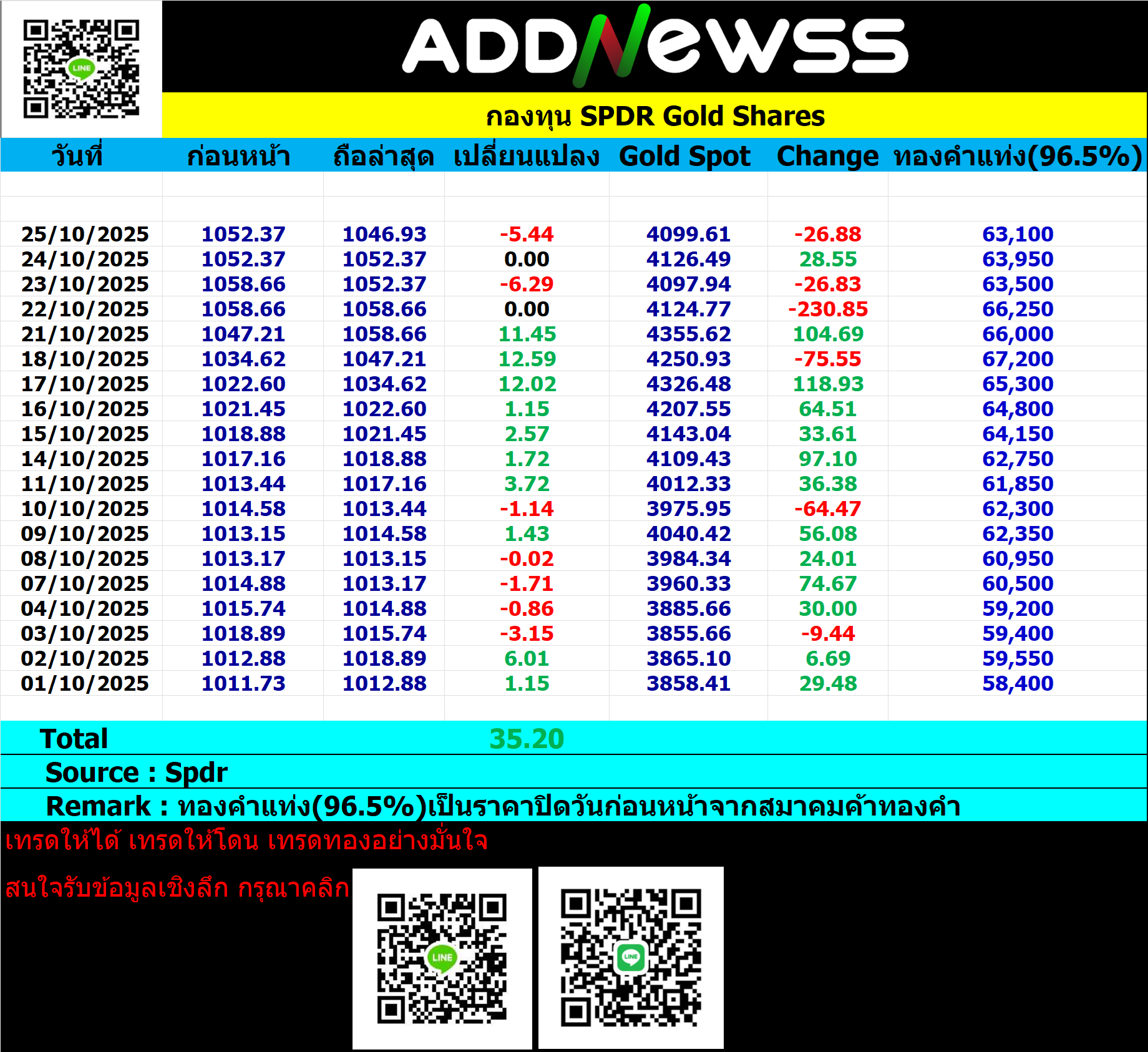 ยอดสะสม Spdr ประจำวันที่ 25 ตุลาคม 2025 📅 2025-10-25 09:48 ✎ bom999 🗇 Gold 👍 - แชร์โพสต์นี้ ยอดสะสม Spdr ย้อนหลังประจำเดือนกันยายน 2025 https://addnewss.news/post/68db1e83916829d3582a475d