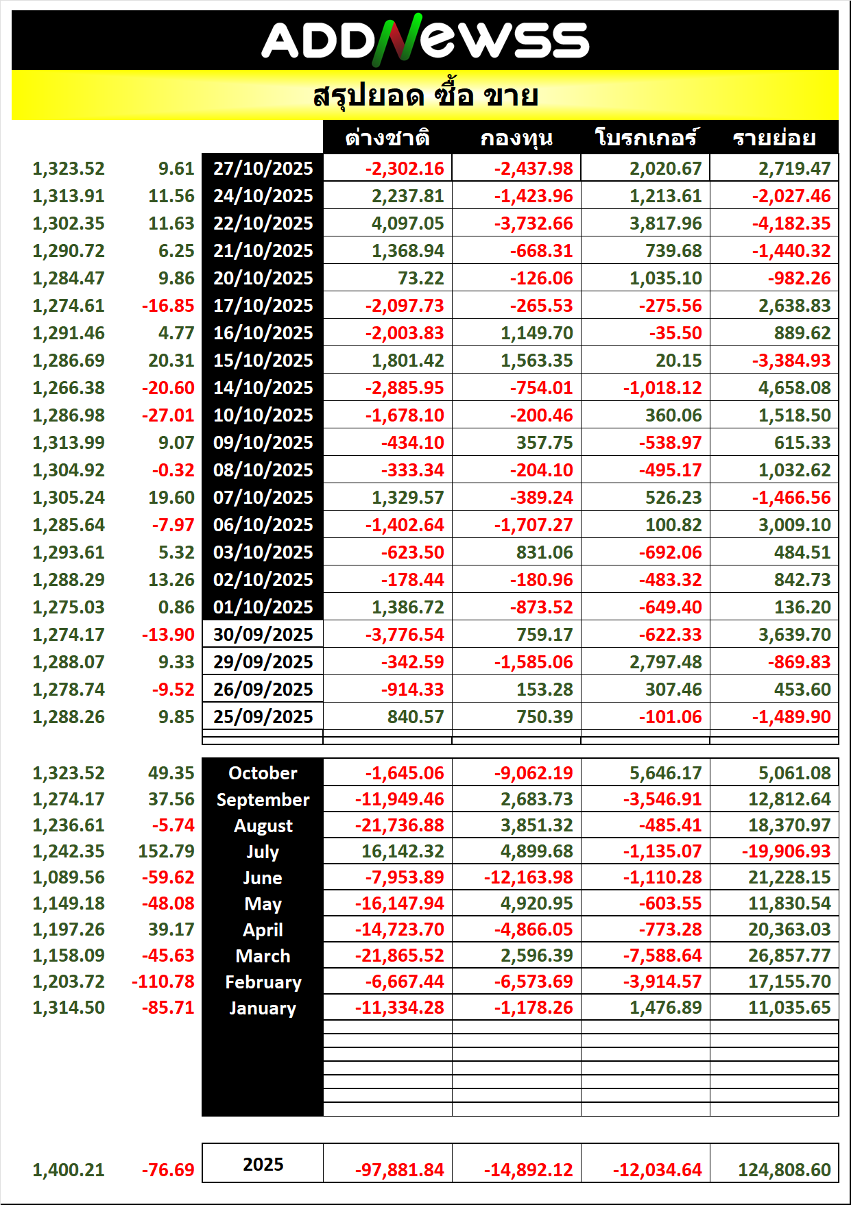 🔥🔥สรุปยอด ซื้อ ขาย🟢 🔴 27/10/2025