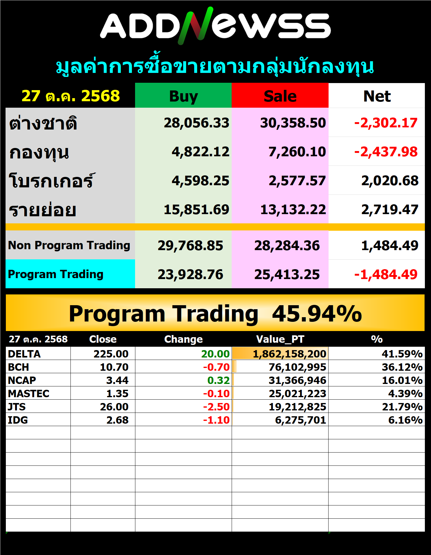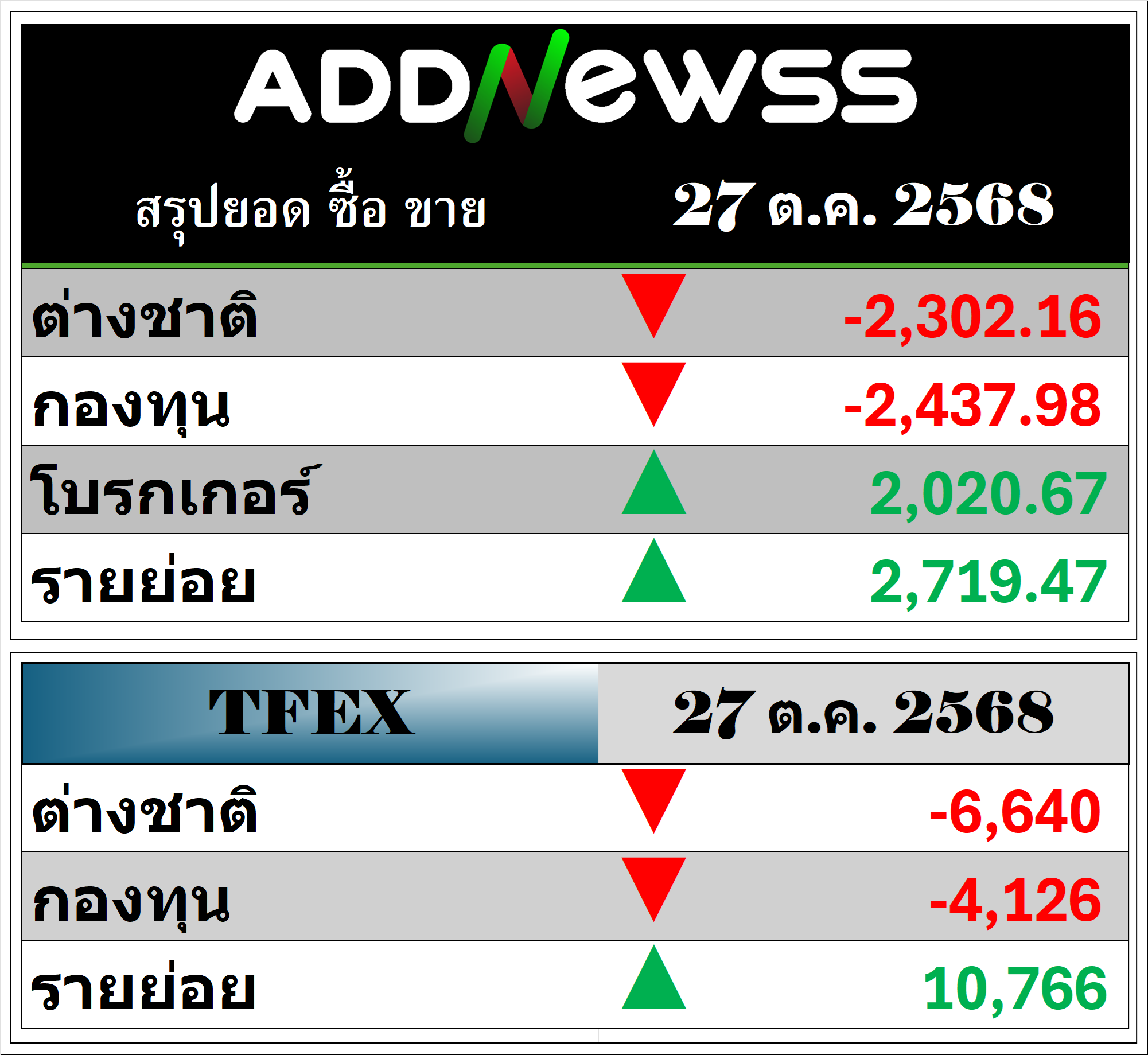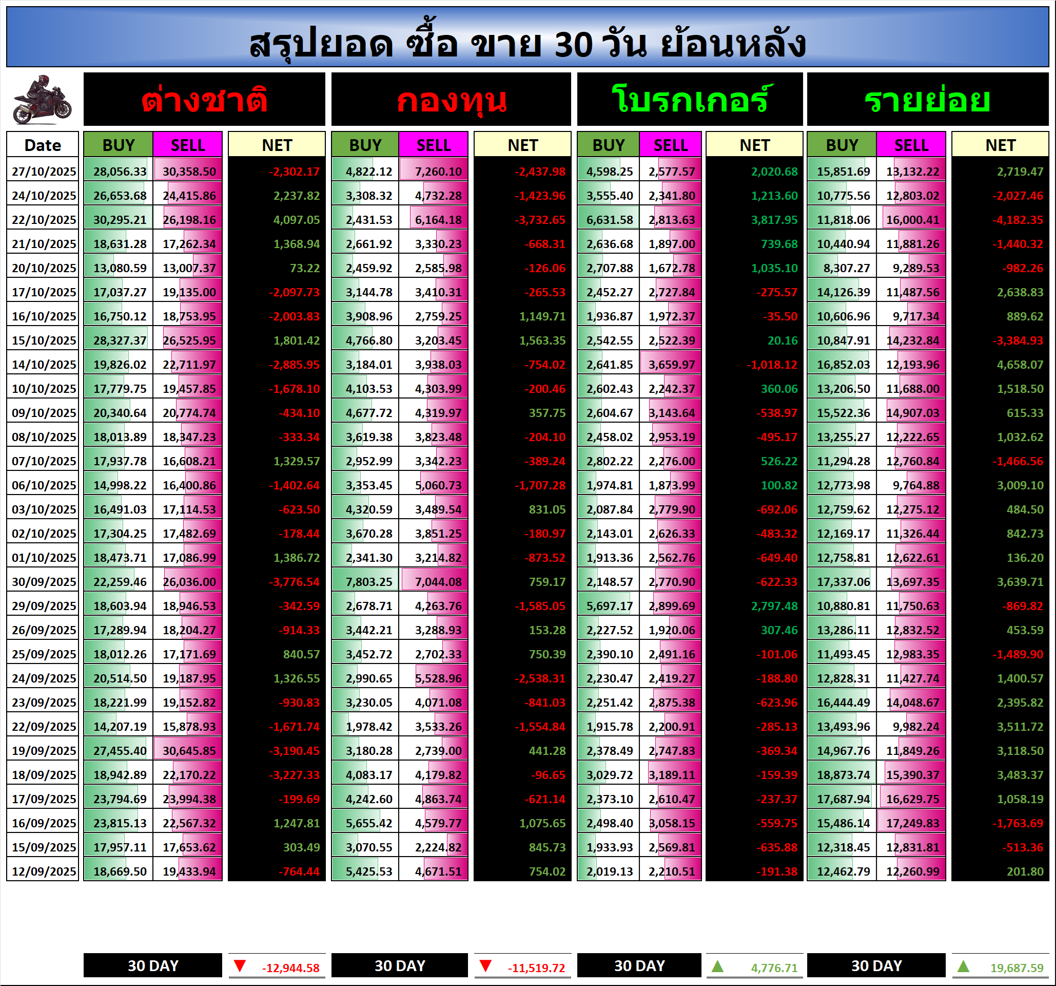🔥🔥สรุปยอด ซื้อ ขาย🟢 🔴 27/10/2025