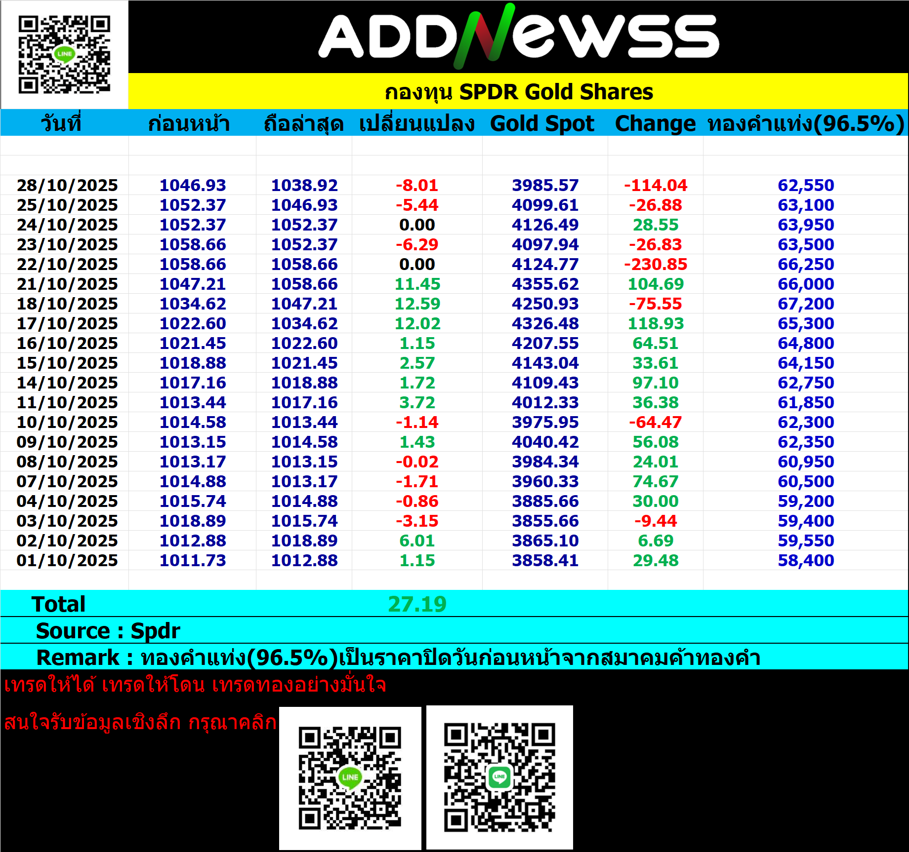 ยอดสะสม Spdr ประจำวันที่ 28 ตุลาคม 2025 📅 2025-10-28 07:09 ✎ bom999 🗇 Gold 👍 - แชร์โพสต์นี้ ยอดสะสม Spdr ย้อนหลังประจำเดือนกันยายน 2025 https://addnewss.news/post/68db1e83916829d3582a475d