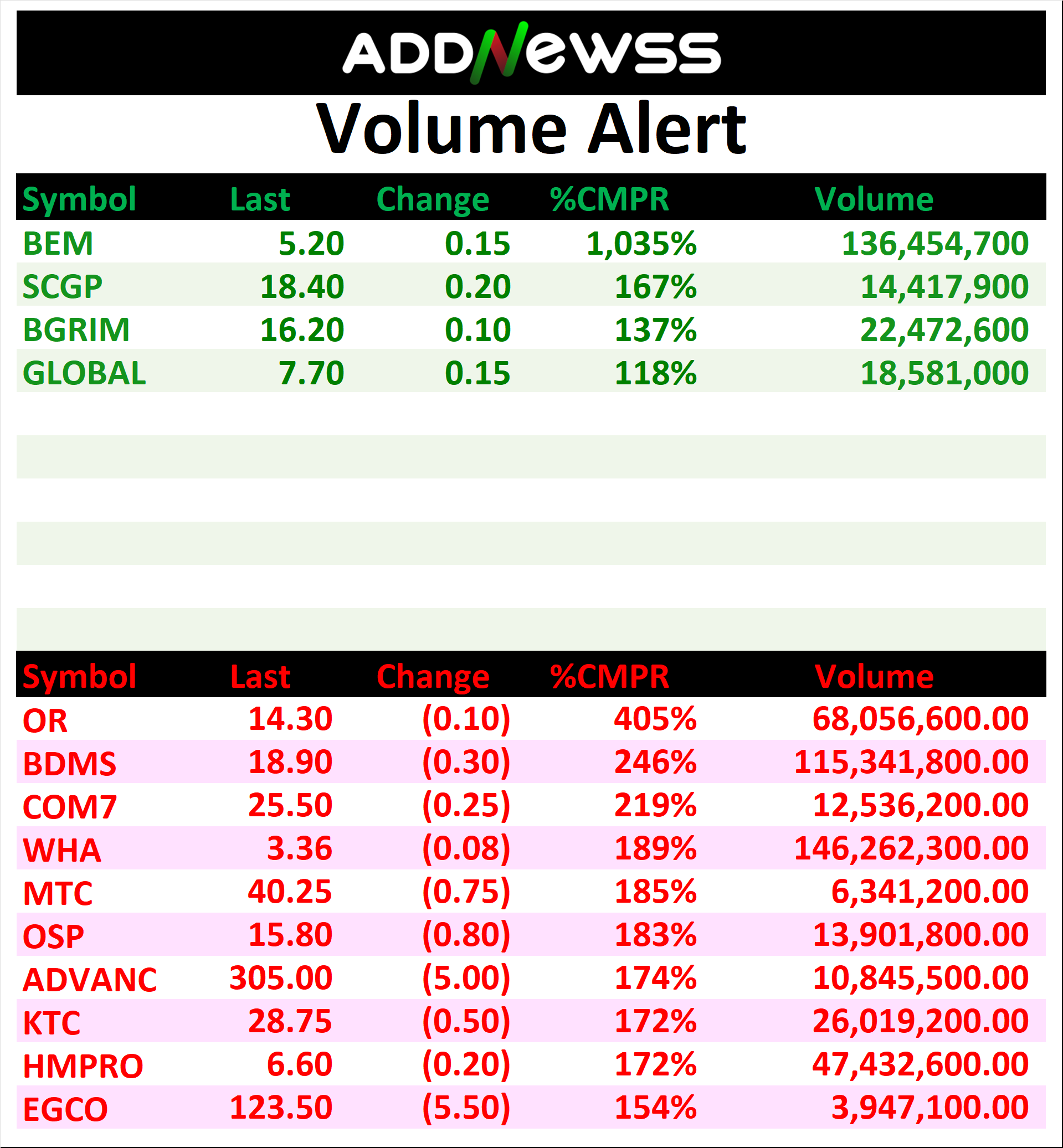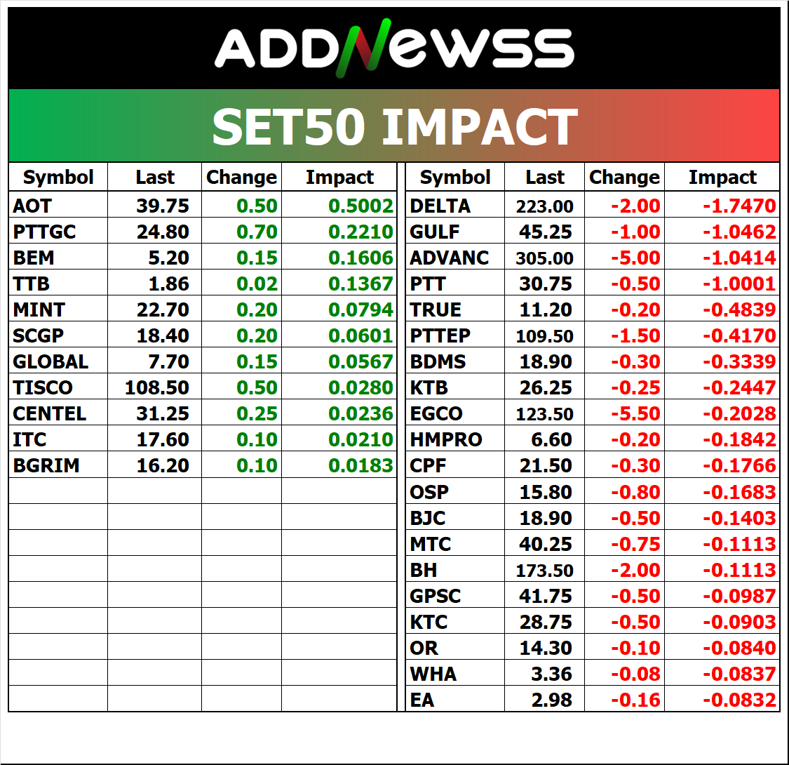 PTT      : 🔻-0.50 ฿2,385,786,500