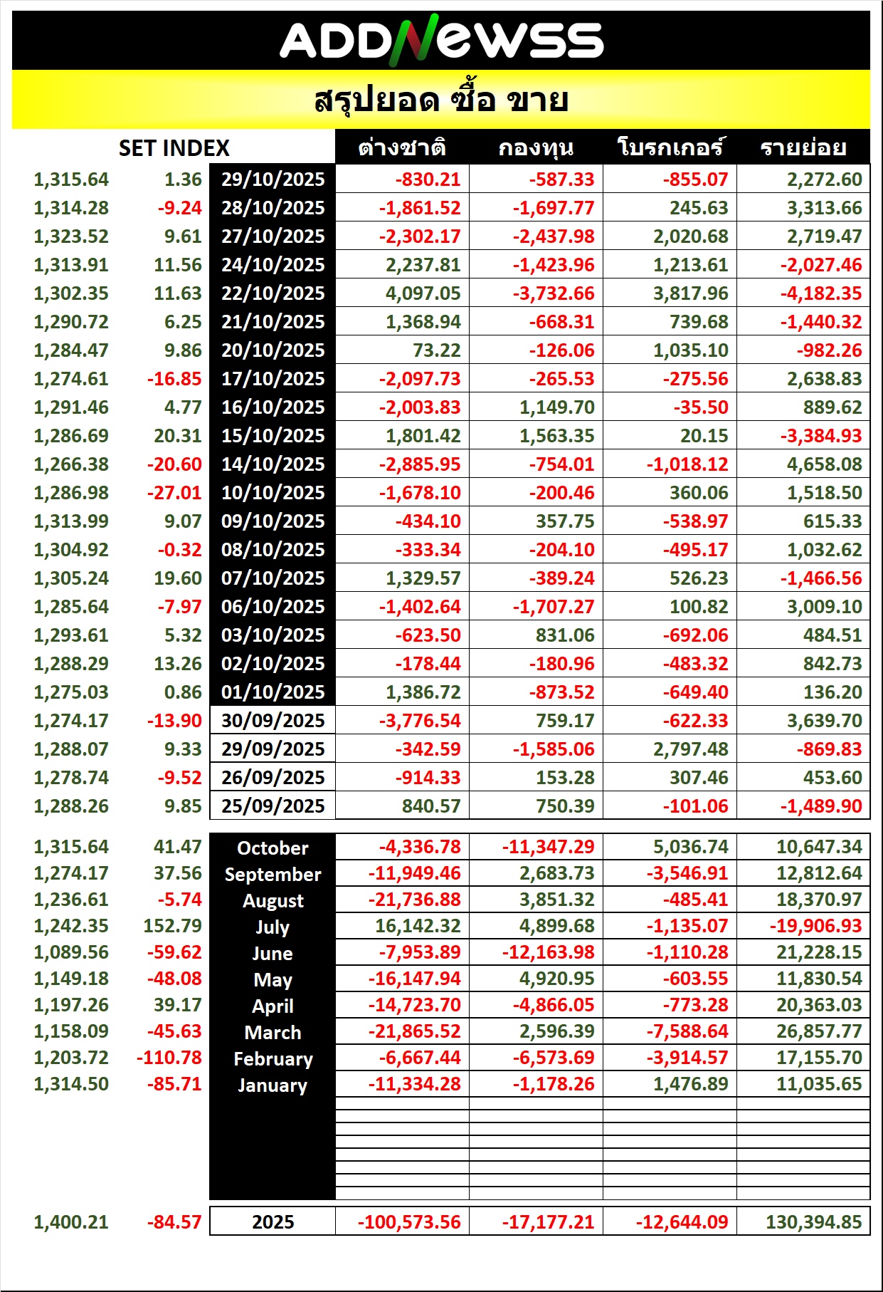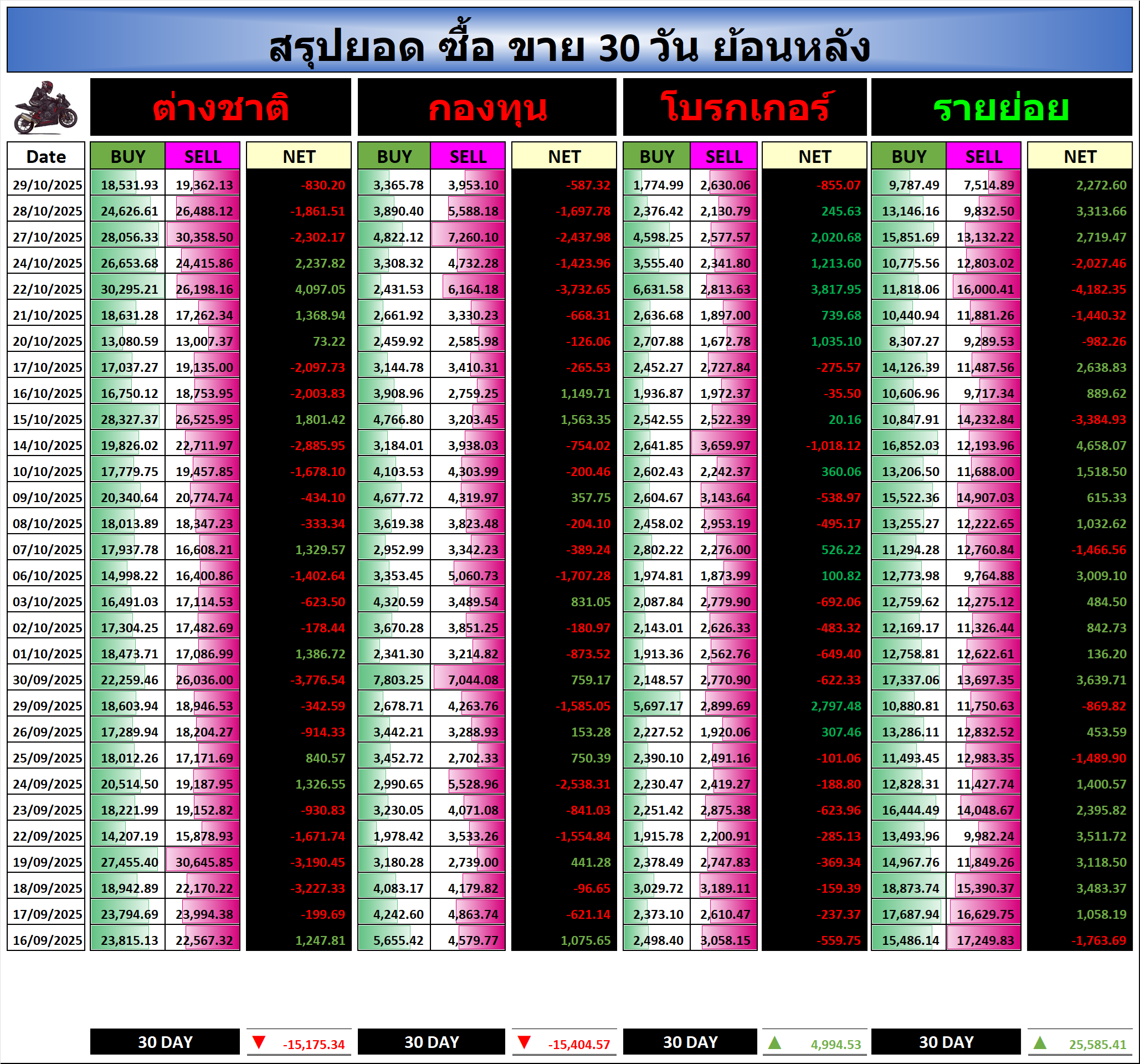 🔥🔥สรุปยอด ซื้อ ขาย🟢 🔴 29/10/2025