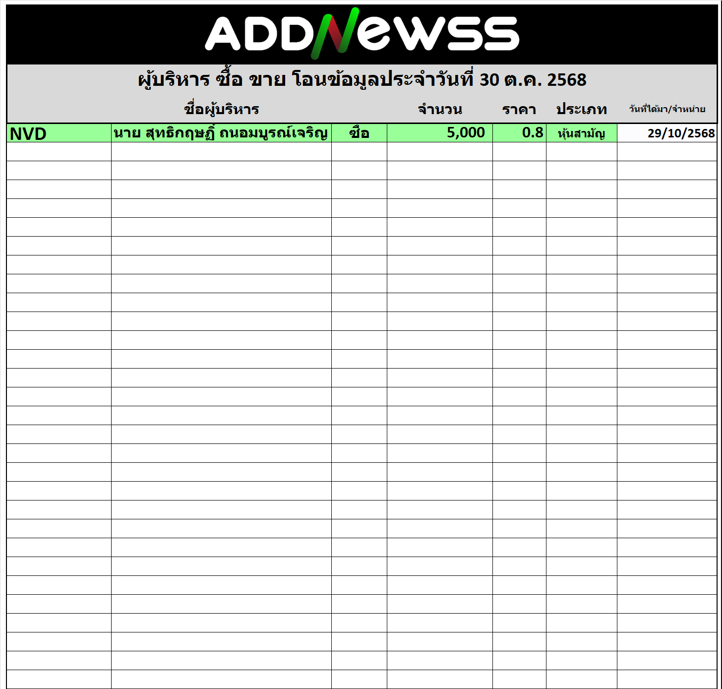🔥🔥สรุปผู้บริหาร ซื้อ ขาย โอน  📅 วันรายงาน 30/10/2025