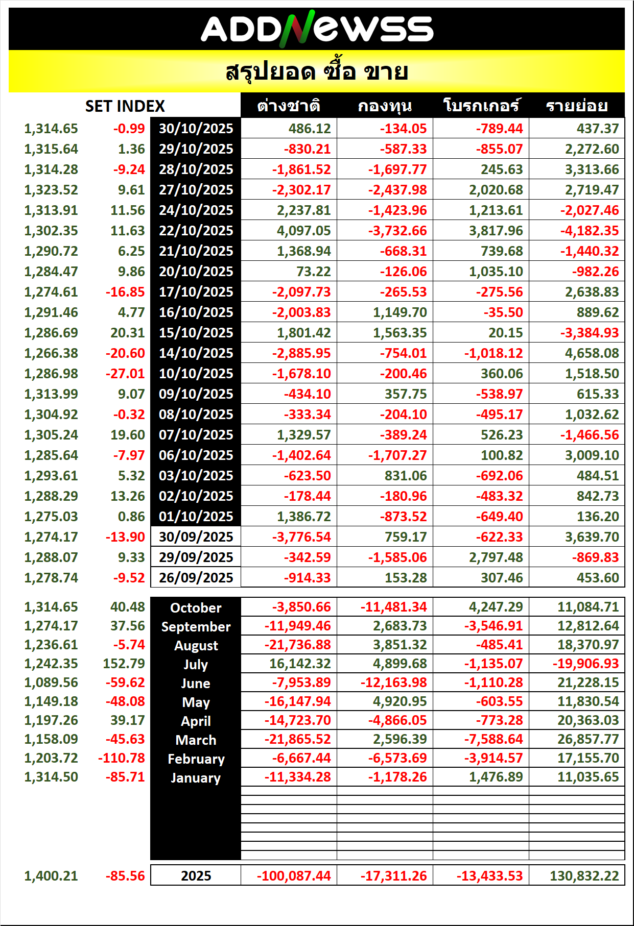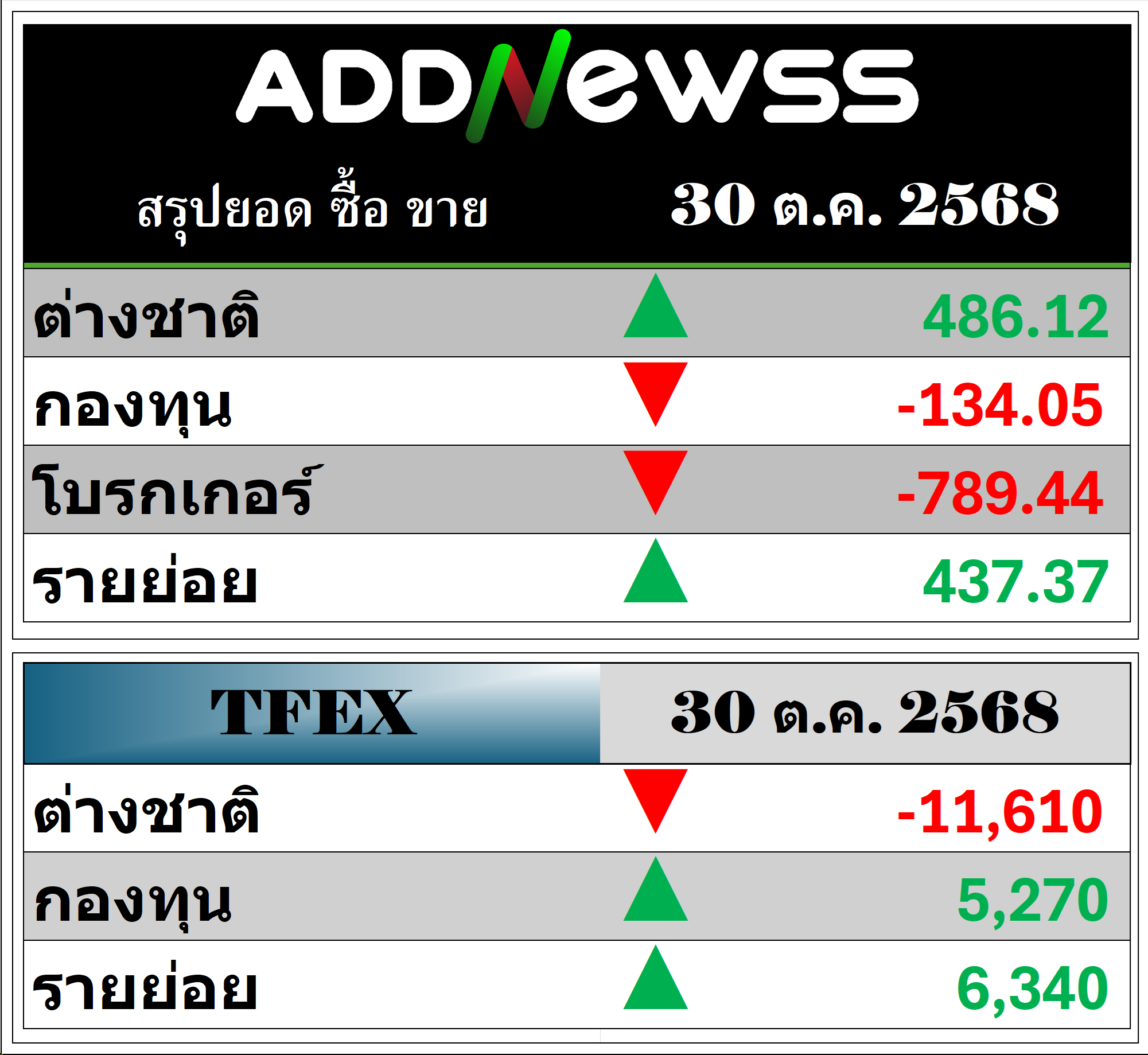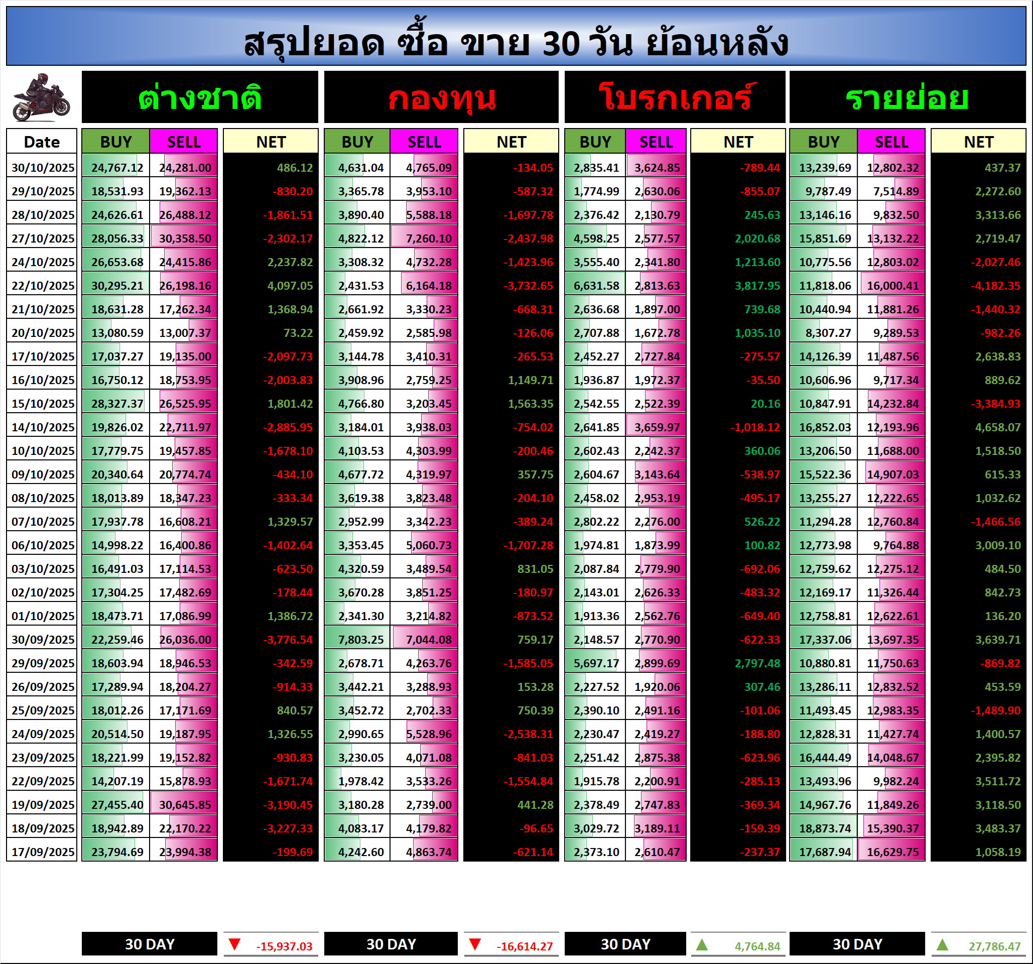 🔥🔥สรุปยอด ซื้อ ขาย🟢 🔴 30/10/2025