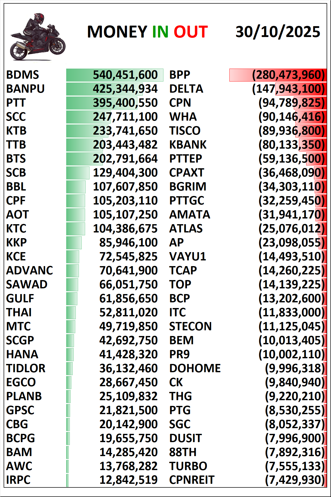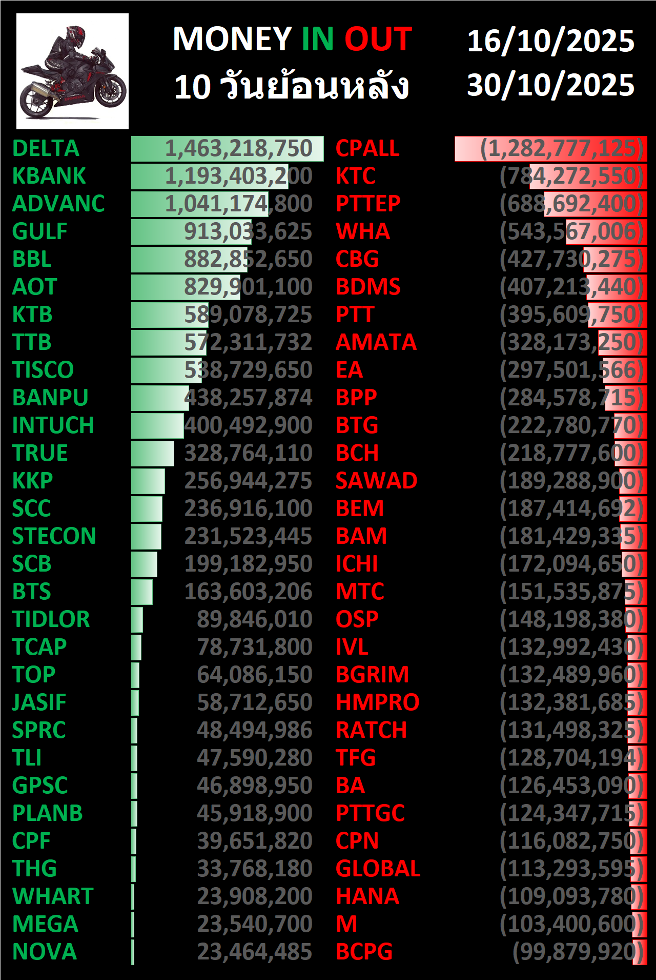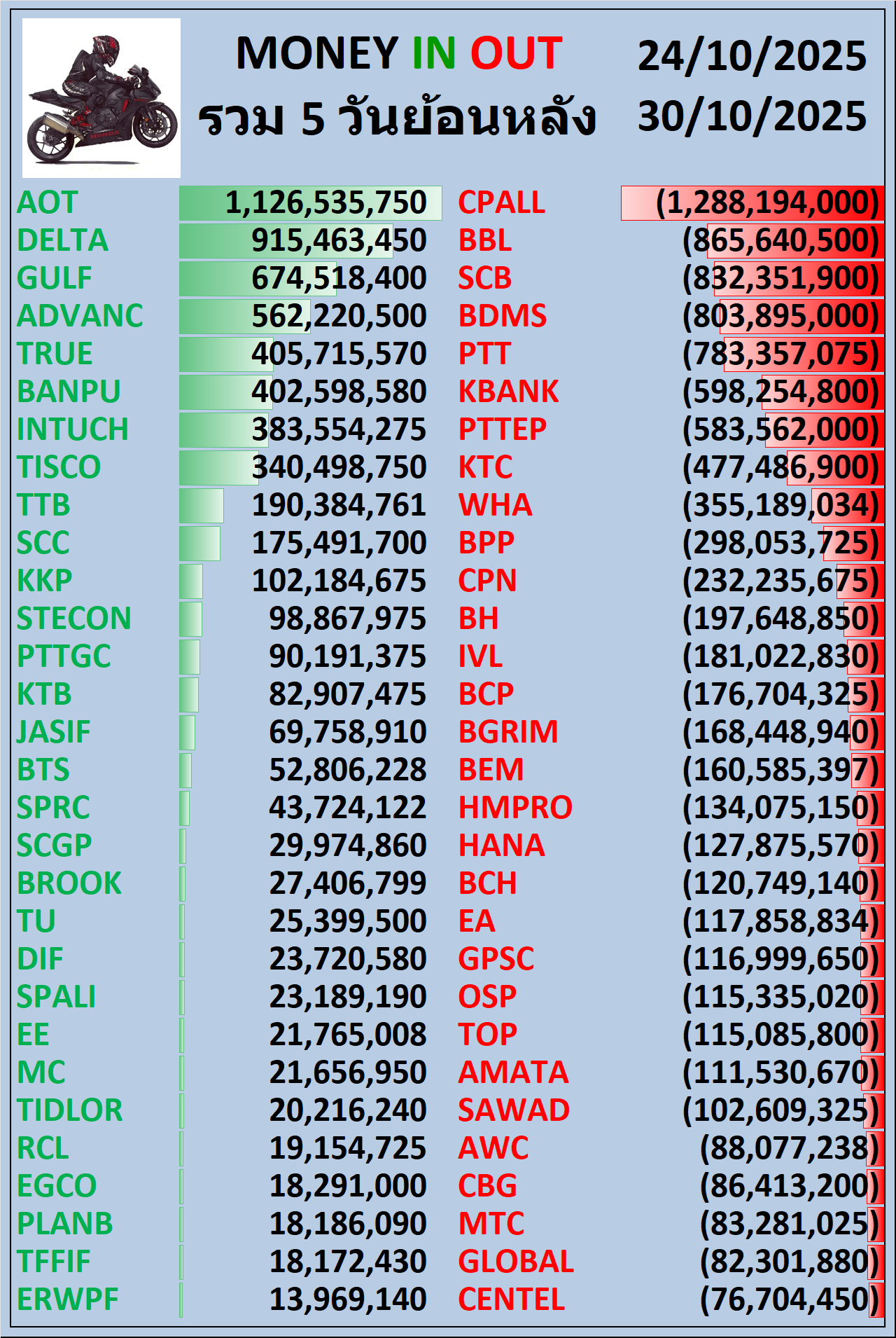💸MONEY 🟢IN 🔴OUT  1 , 5 , 10 วันย้อนหลัง  30/10/2025