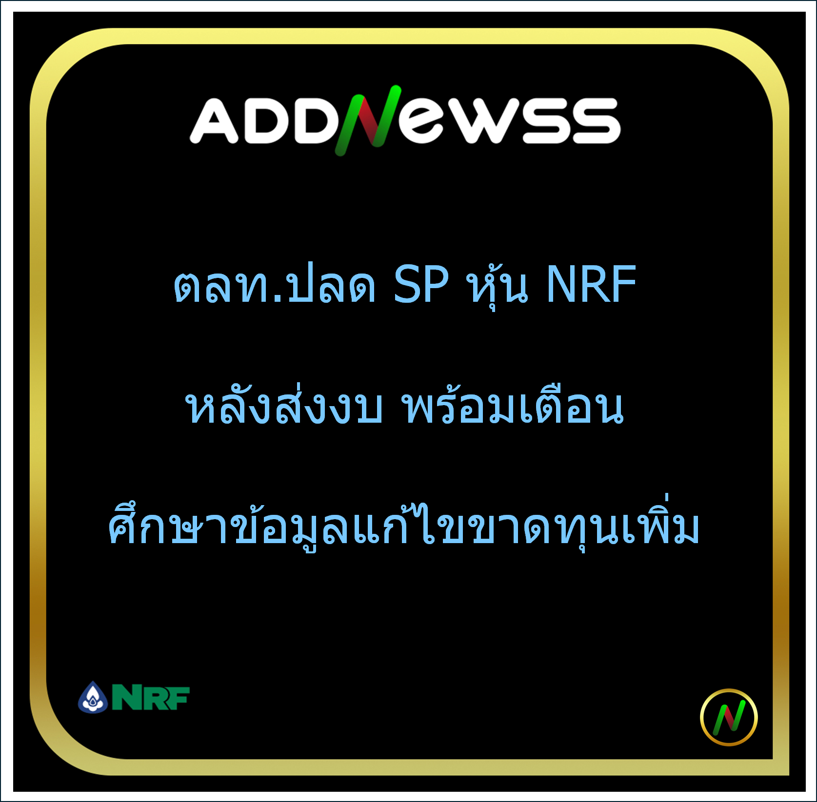 IQ > ตลท.ปลด SP หุ้น NRF หลังส่งงบ พร้อมเตือนศึกษาข้อมูลแก้ไขขาดทุนเพิ่ม
