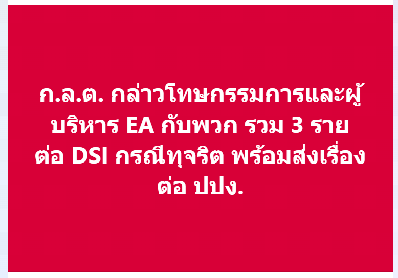 HOI> ก.ล.ต. กล่าวโทษกรรมการและผู้บริหาร EA กับพวก รวม 3 ราย ต่อ DSI กรณีทุจริต พร้อมส่งเรื่องต่อ ปปง.