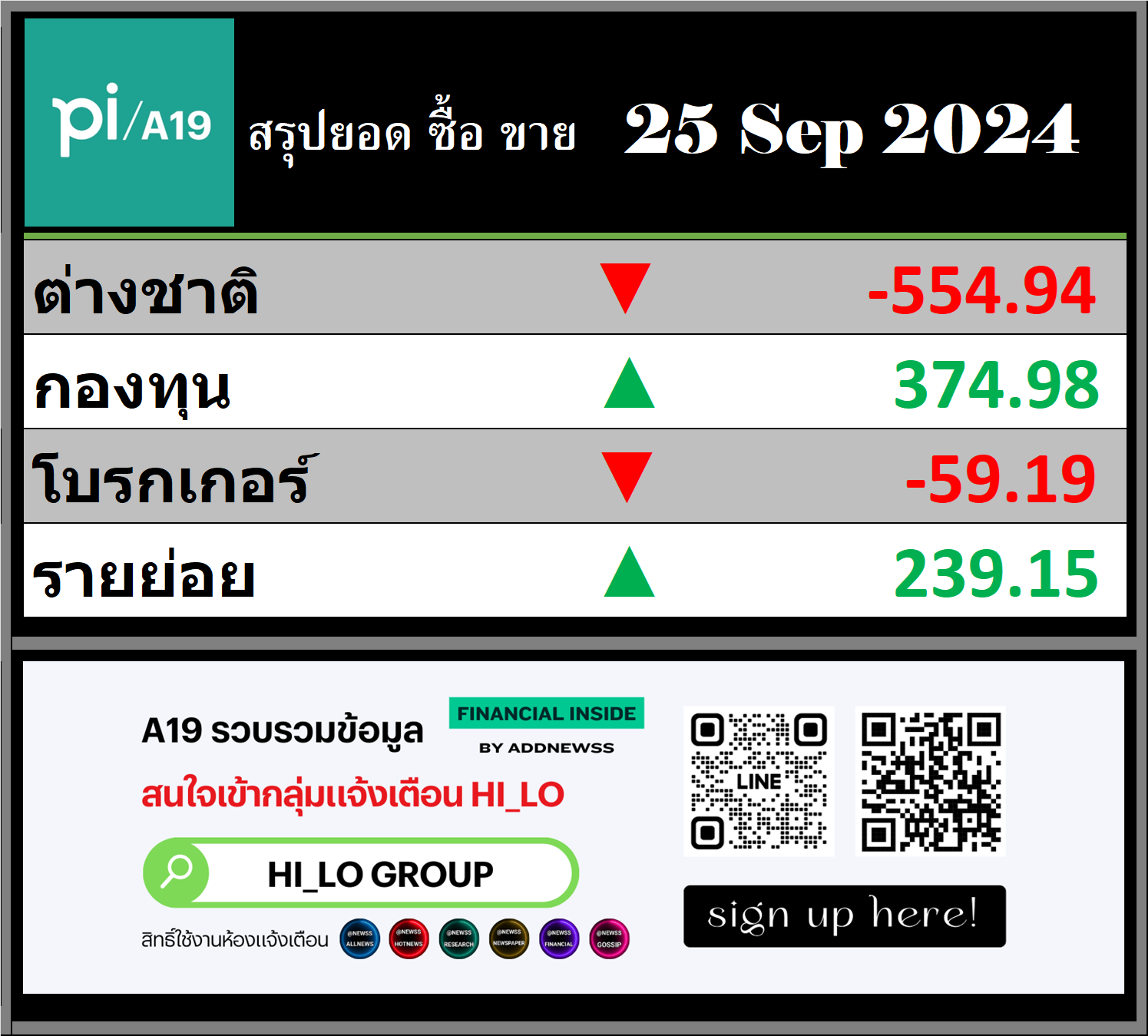 25 ก.ย. 2567 ต่างชาติ กลับมาขาย 🔴 -554.94 ล้าน