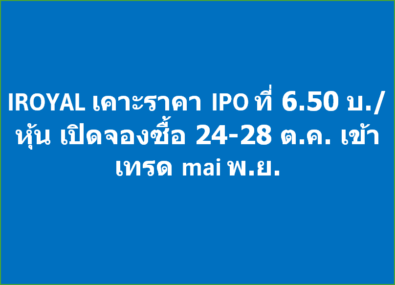 IQ > *IROYAL āđāļāļēāļ°āļĢāļēāļāļē IPO āļāļĩāđ 6.50 āļ. P/E 15.83 āđāļāđāļē āļāļāļāļāļ·āđāļ 24-28 āļ.āļ. āđāļāđāļēāđāļāļĢāļ mai āļ.āļĒ.