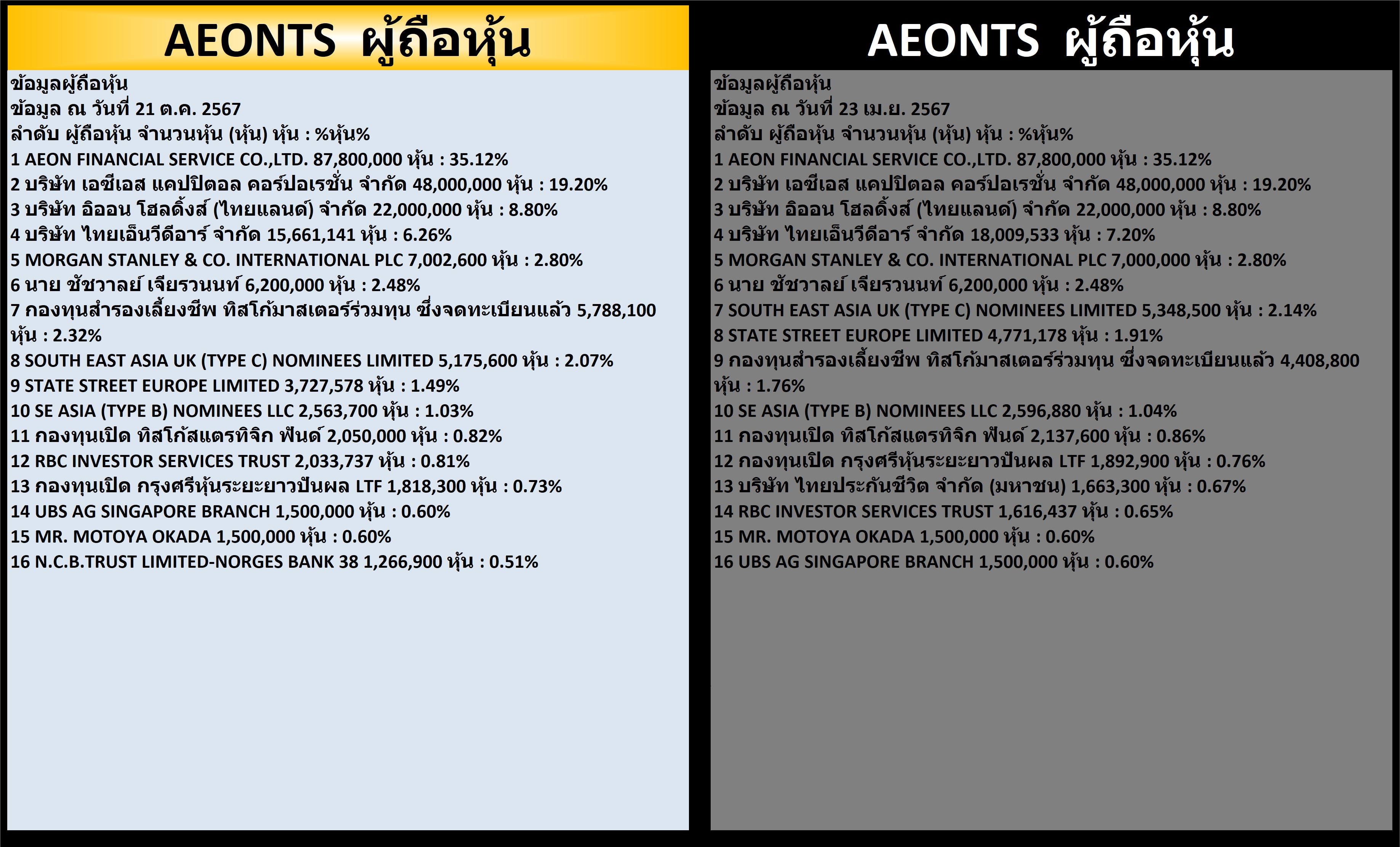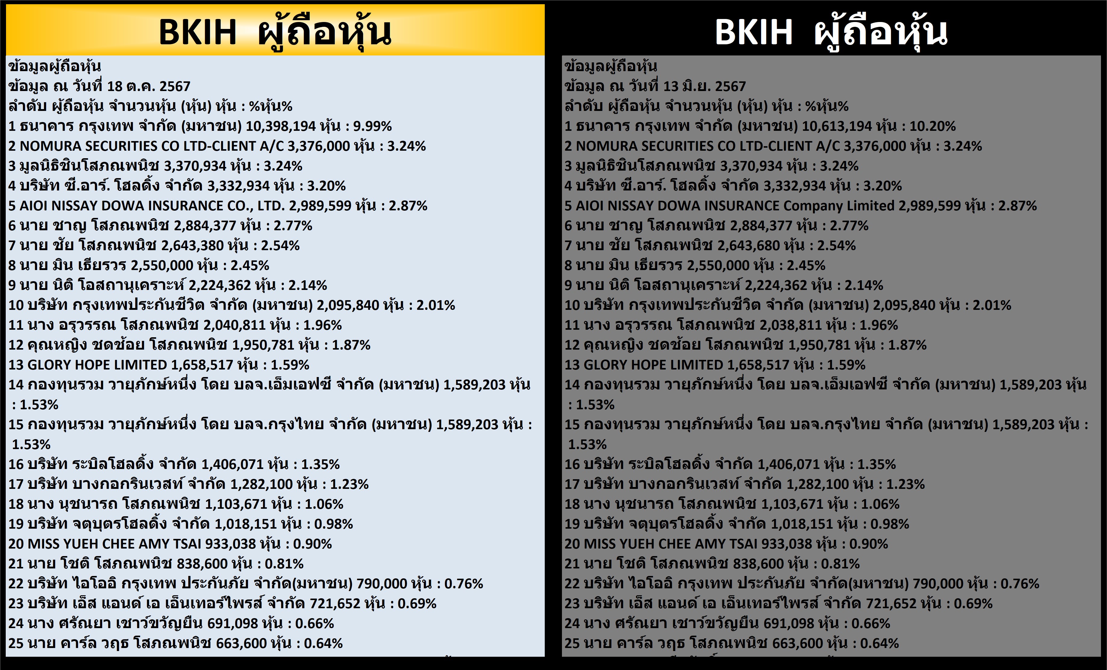 👨💼👩💼หุ้นที่มีรายงานผู้ถือหุ้นใหญ่เปลี่ยนแปลง