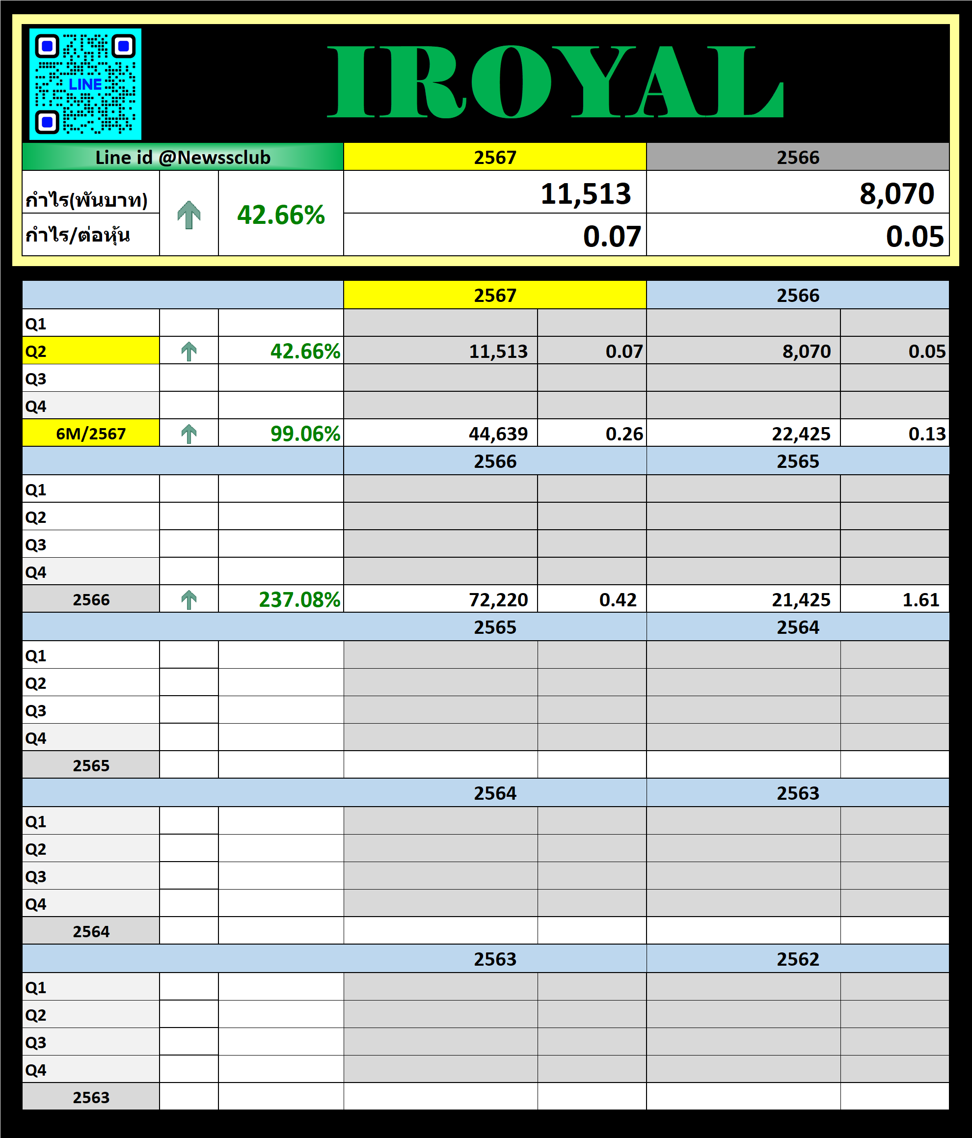 🔥IROYAL Q2/67 📅 2024-11-04 23:19 ✎ administrator 🗇 📰News 👍 - แชร์โพสต์นี้ 🔥IROYAL Q2/67 ‼️เข้ากลุ่ม แจ้งเตือนประกาศงบ 👇👇 https://line.me/R/ti/g/JY4SEswmSj