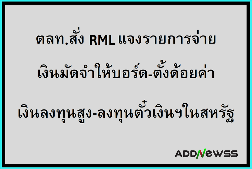 IQ > *ตลท.สั่ง RML แจงรายการจ่ายเงินมัดจำให้บอร์ด-ตั้งด้อยค่าเงินลงทุนสูง-ลงทุนตั๋วเงินฯในสหรัฐ