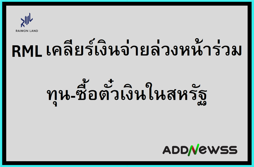 IQ > RML เคลียร์เงินจ่ายล่วงหน้าร่วมทุน-ซื้อตั๋วเงินในสหรัฐ ลั่นเดินหน้าเปิดโครงการใหม่-ส่ง OCC เข้า REIT