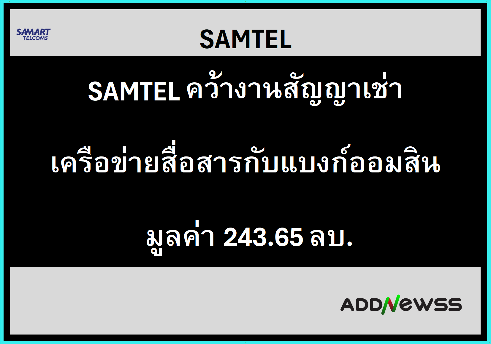IQ > *SAMTEL คว้างานสัญญาเช่าเครือข่ายสื่อสารกับแบงก์ออมสิน มูลค่า 243.65 ลบ.