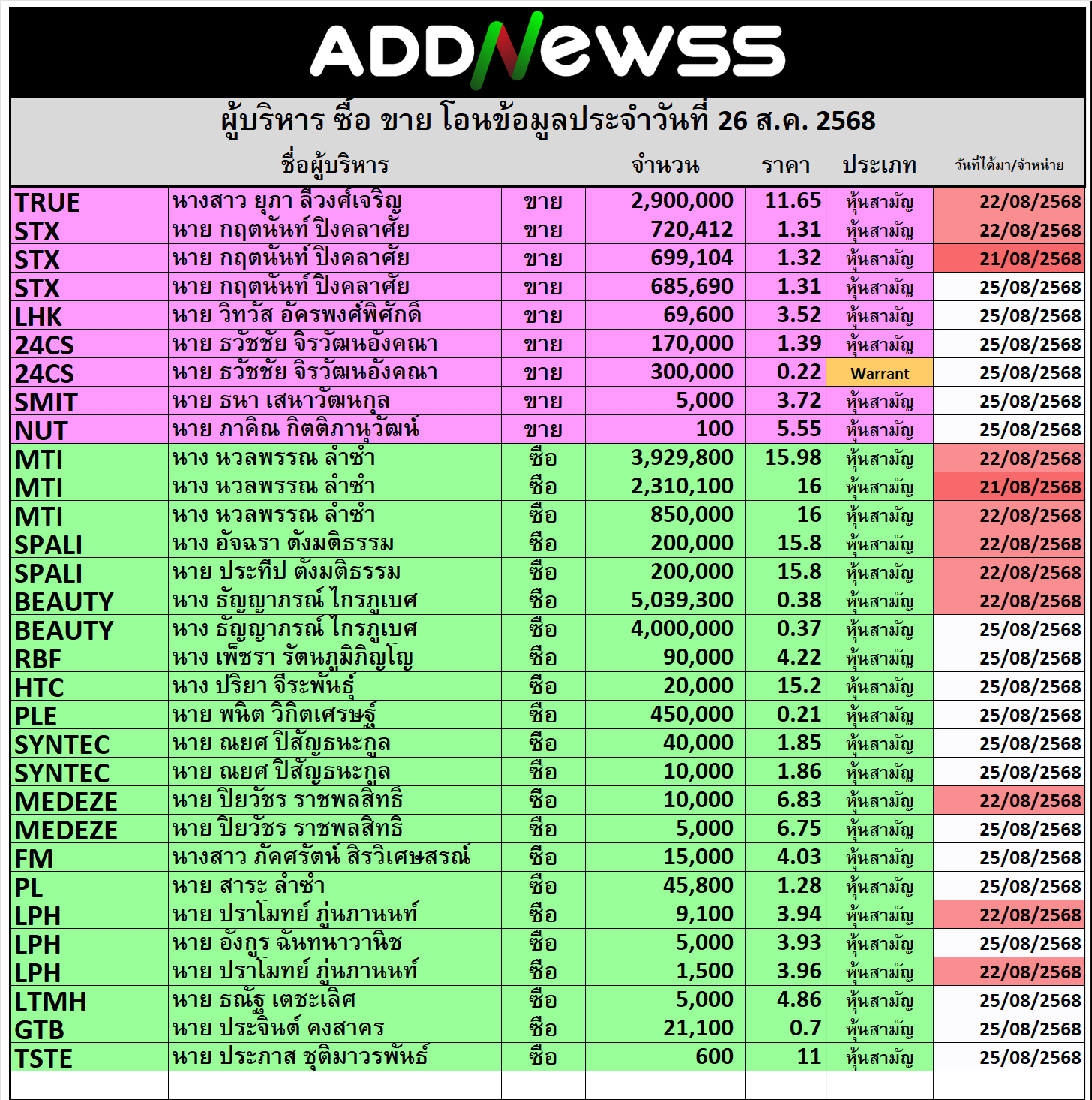 🔥🔥สรุปผู้บริหาร ซื้อ ขาย โอน