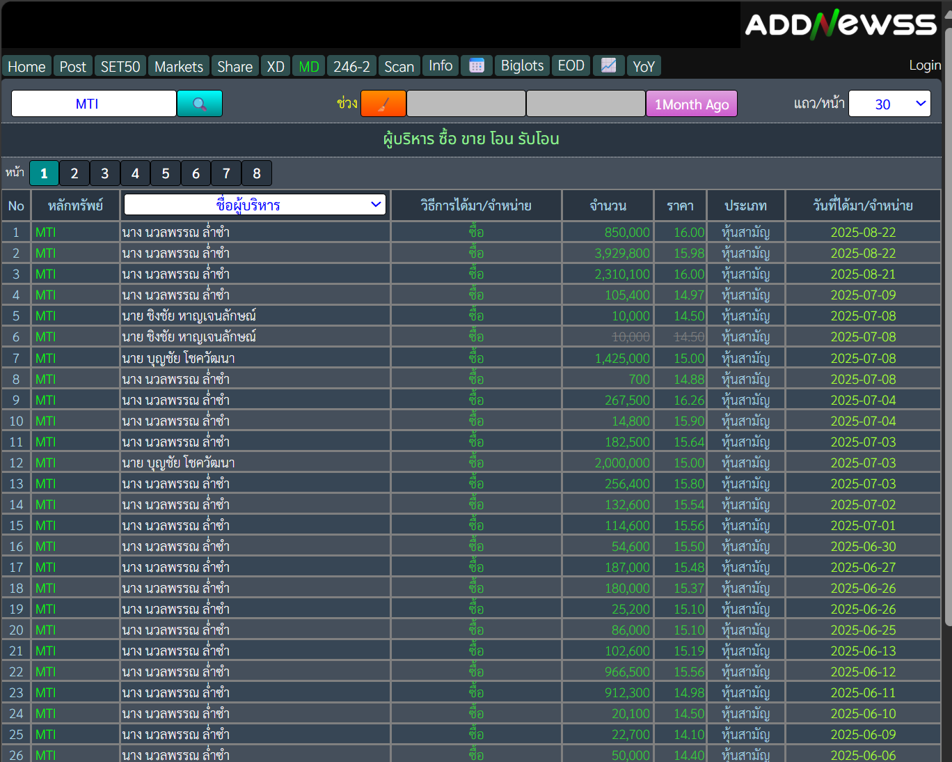 นวลพรรณ ล่ำซำ 🟢ซื้อ MTI 7,089,900 หุ้น