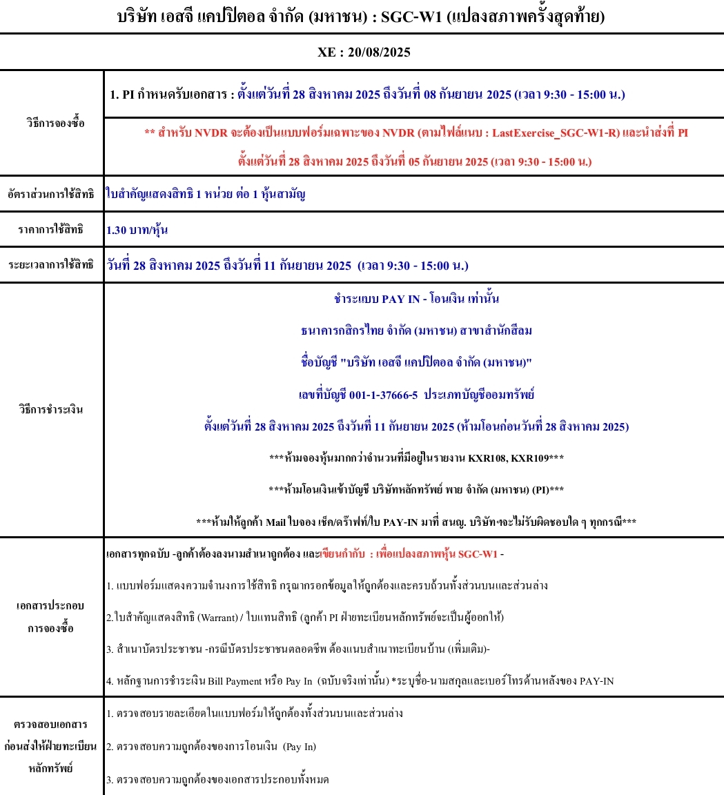 รายละเอียดการใช้สิทธิแปลงสภาพหุ้น : SGC-W1 ,SGC-W1-R (ครั้งสุดท้าย)