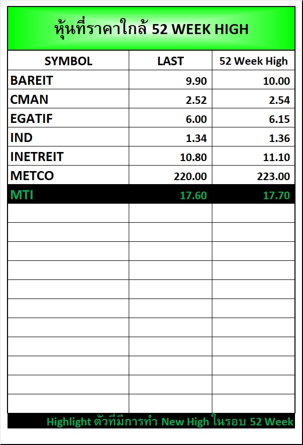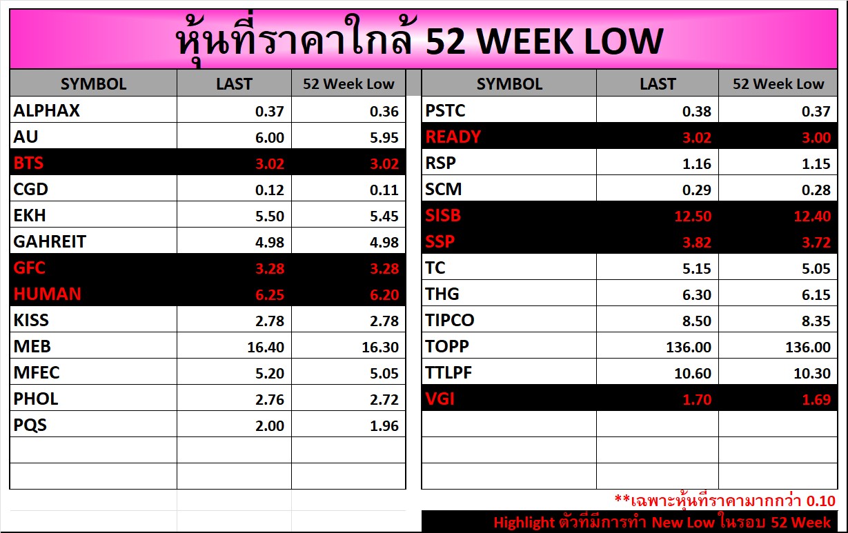 ⭐หุ้นที่ราคาใกล้ 52 Week 🟢High 🔴Low 📅23/09/2025