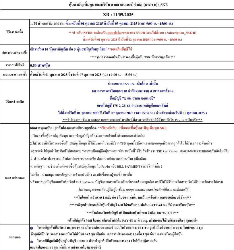 รายละเอียดการใช้สิทธิจองซื้อหุ้นสามัญเพิ่มทุน บริษัท สากล เอนเนอยี จำกัด (มหาชน) :SKE, SKE-R