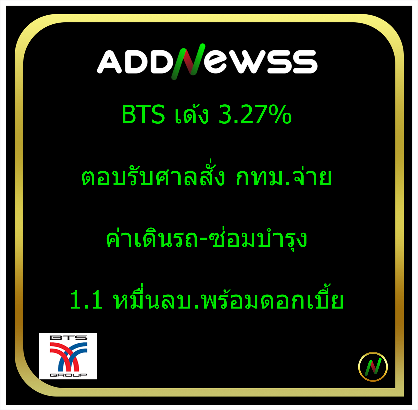 IQ >BTS เด้ง 3.27% ตอบรับศาลสั่ง กทม.จ่ายค่าเดินรถ-ซ่อมบำรุง 1.1 หมื่นลบ.พร้อมดอกเบี้ย