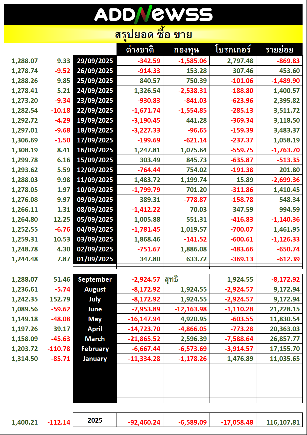 🔥🔥สรุปยอด ซื้อ ขาย🟢 🔴 29/09/2025