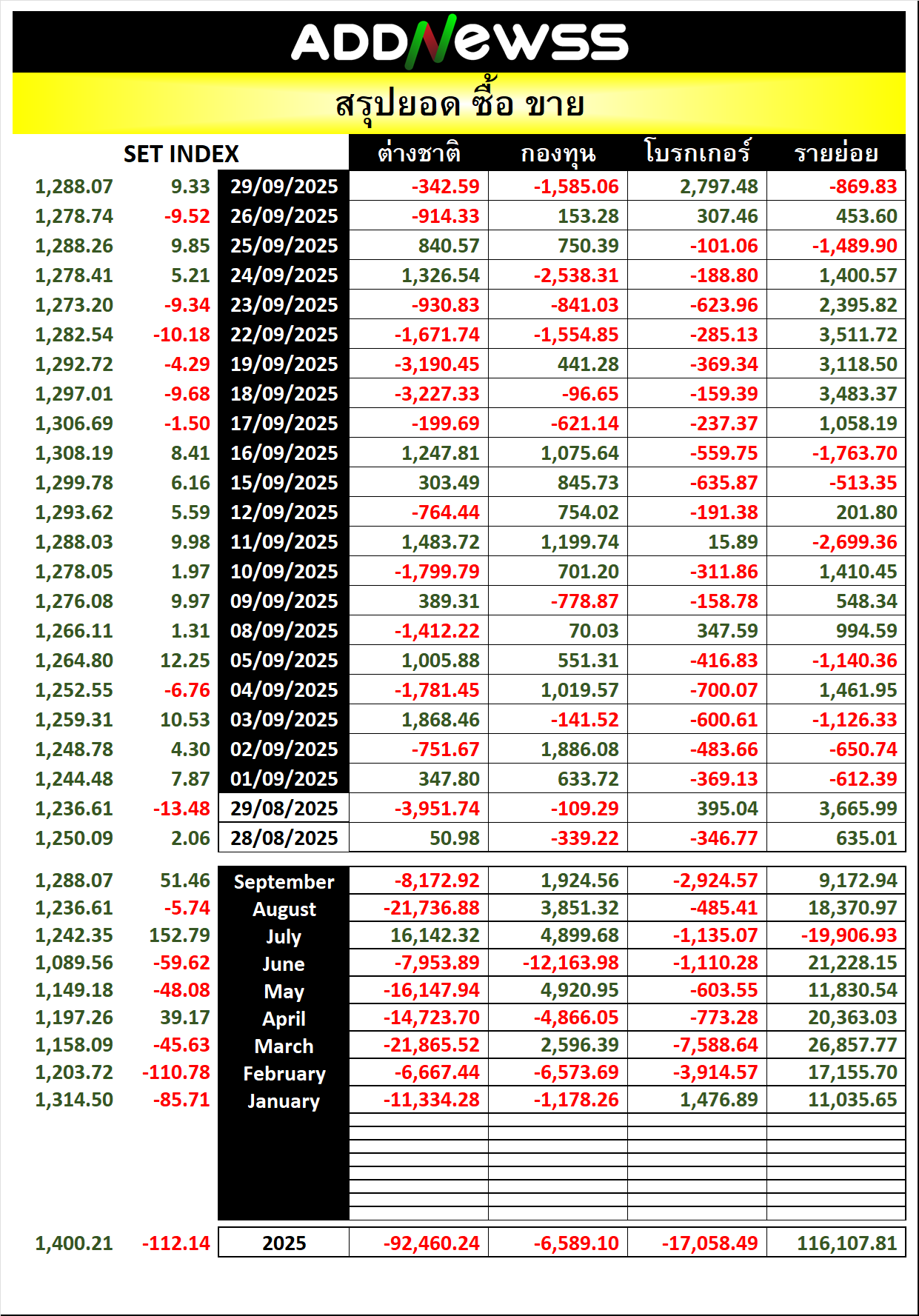 🔥🔥สรุปยอด ซื้อ ขาย🟢 🔴 29/09/2025