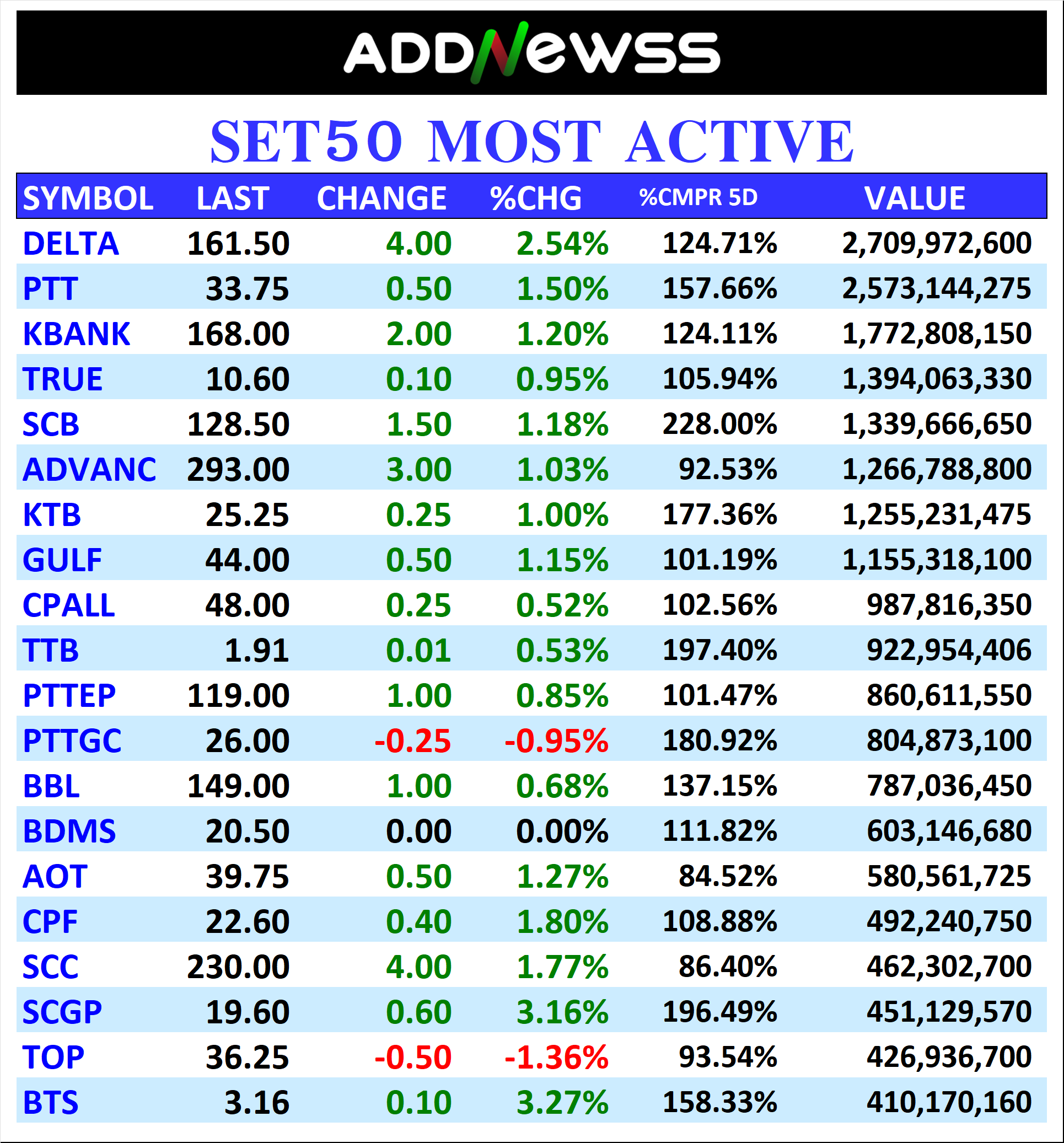 DELTA : 🟢+4.00 ฿2,709,972,600