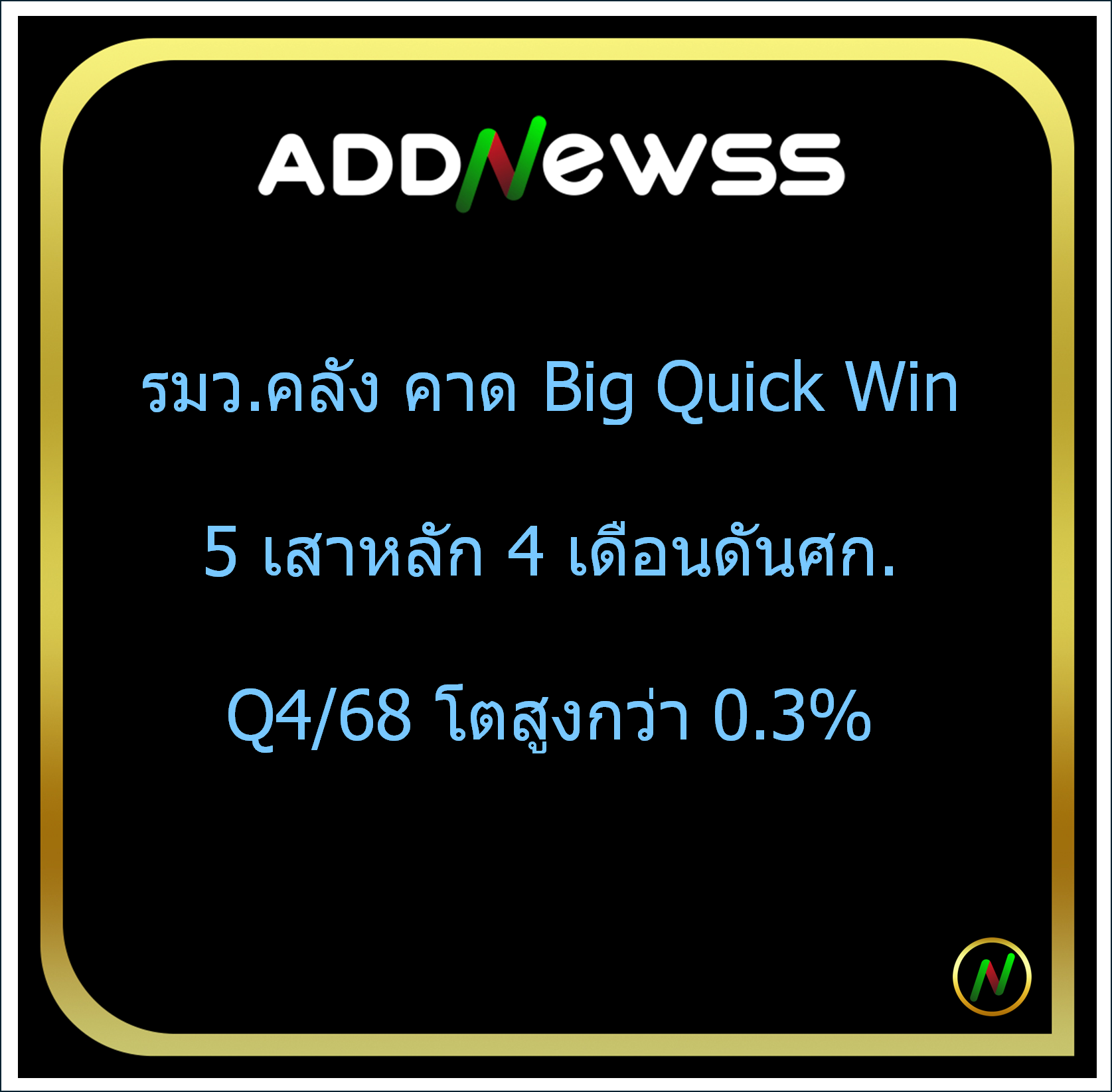 IQ > *รมว.คลัง คาด Big Quick Win 5 เสาหลัก 4 เดือนดันศก.Q4/68 โตสูงกว่า 0.3% หนี้ครัวเรือนต่ำกว่า 87.4% ต่อ GDP