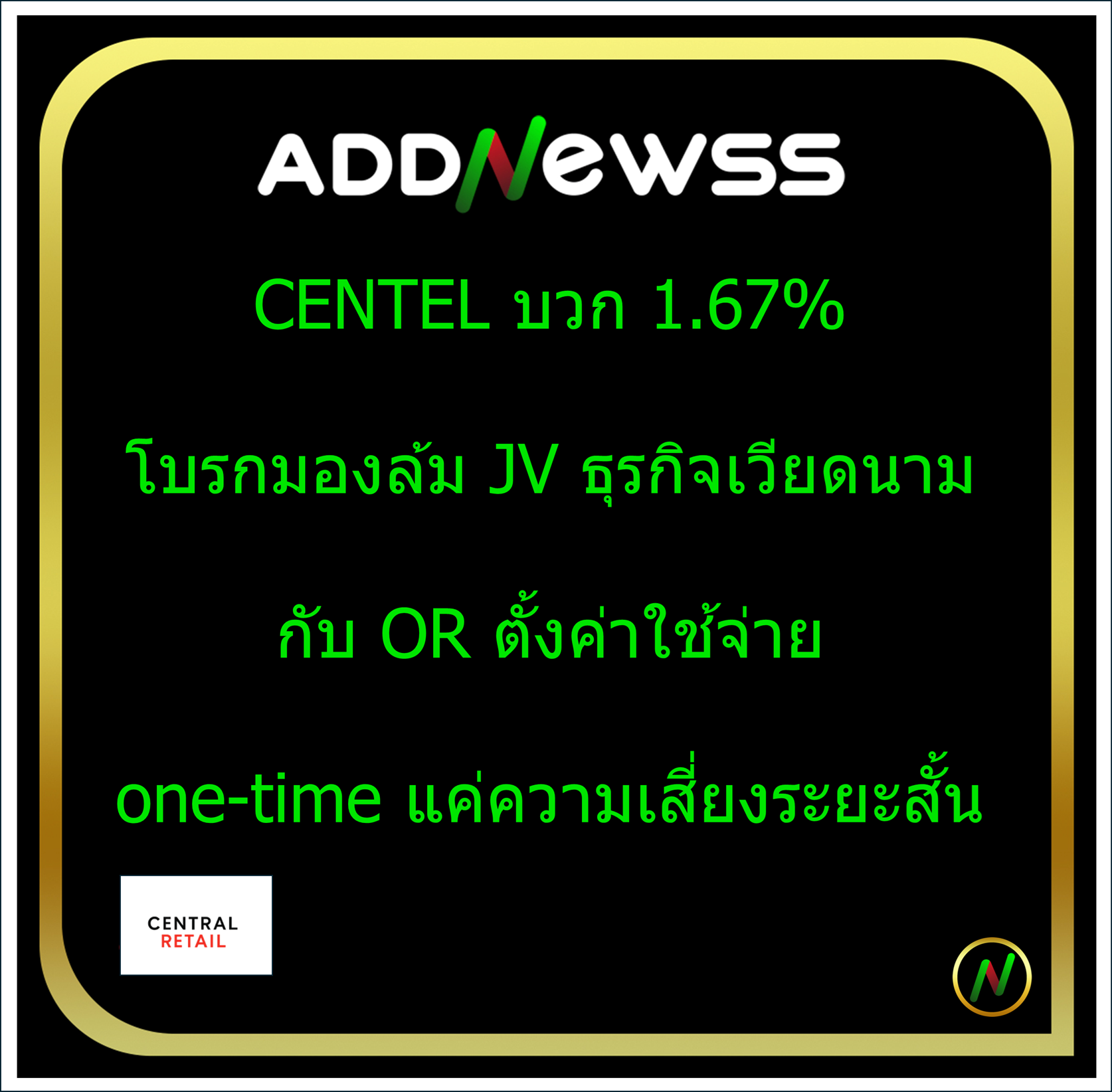 IQ >CENTEL บวก 1.67% โบรกมองล้ม JV ธุรกิจเวียดนามกับ OR ตั้งค่าใช้จ่าย one-time แค่ความเสี่ยงระยะสั้น