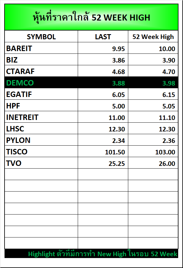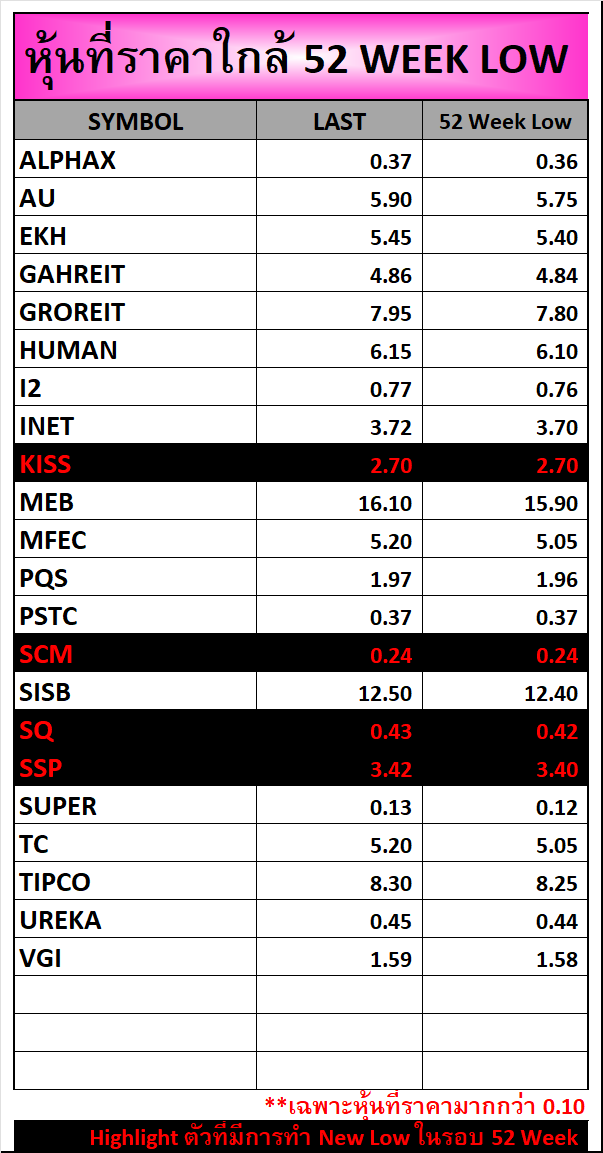 ⭐หุ้นที่ราคาใกล้ 52 Week 🟢High 🔴Low 📅01/10/2025