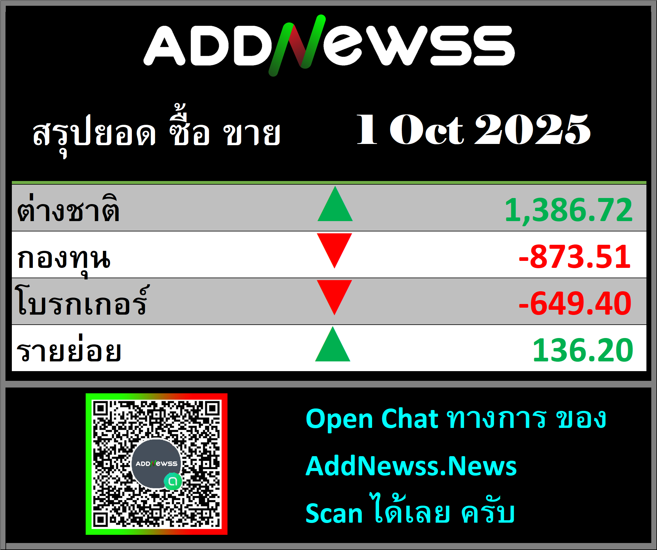 🔥🔥สรุปยอด ซื้อ ขาย🟢 🔴 01/10/2025