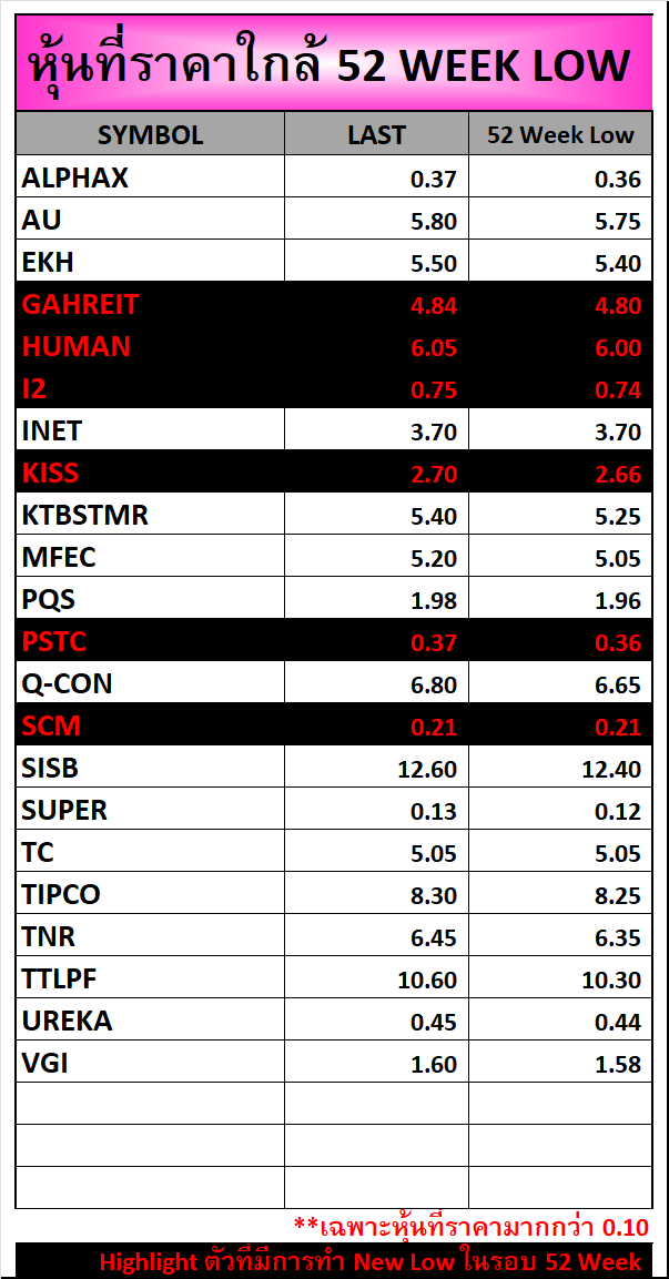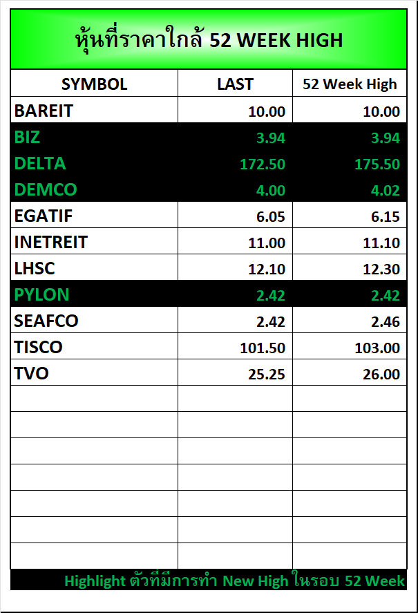 ⭐หุ้นที่ราคาใกล้ 52 Week 🟢High 🔴Low 📅02/10/2025