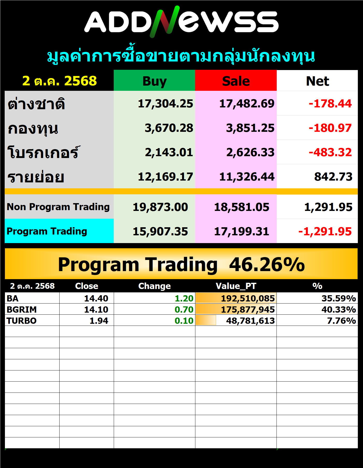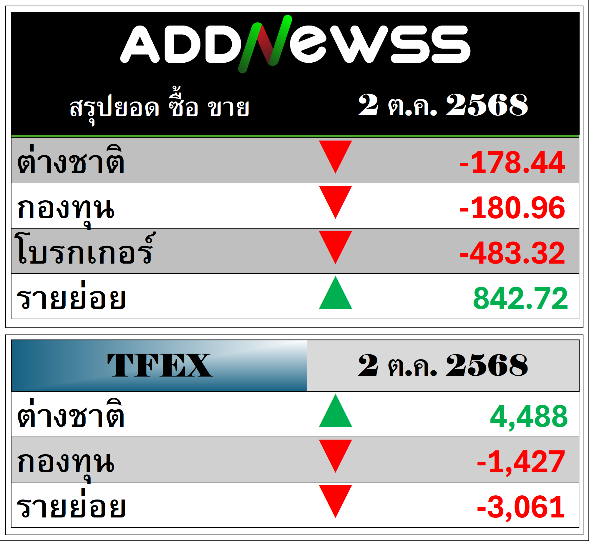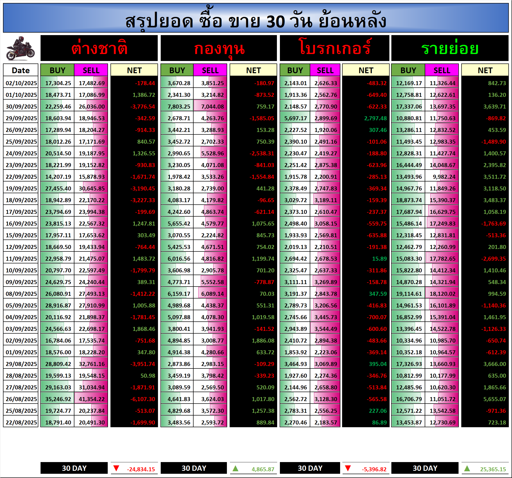 🔥🔥สรุปยอด ซื้อ ขาย🟢 🔴 02/10/2025