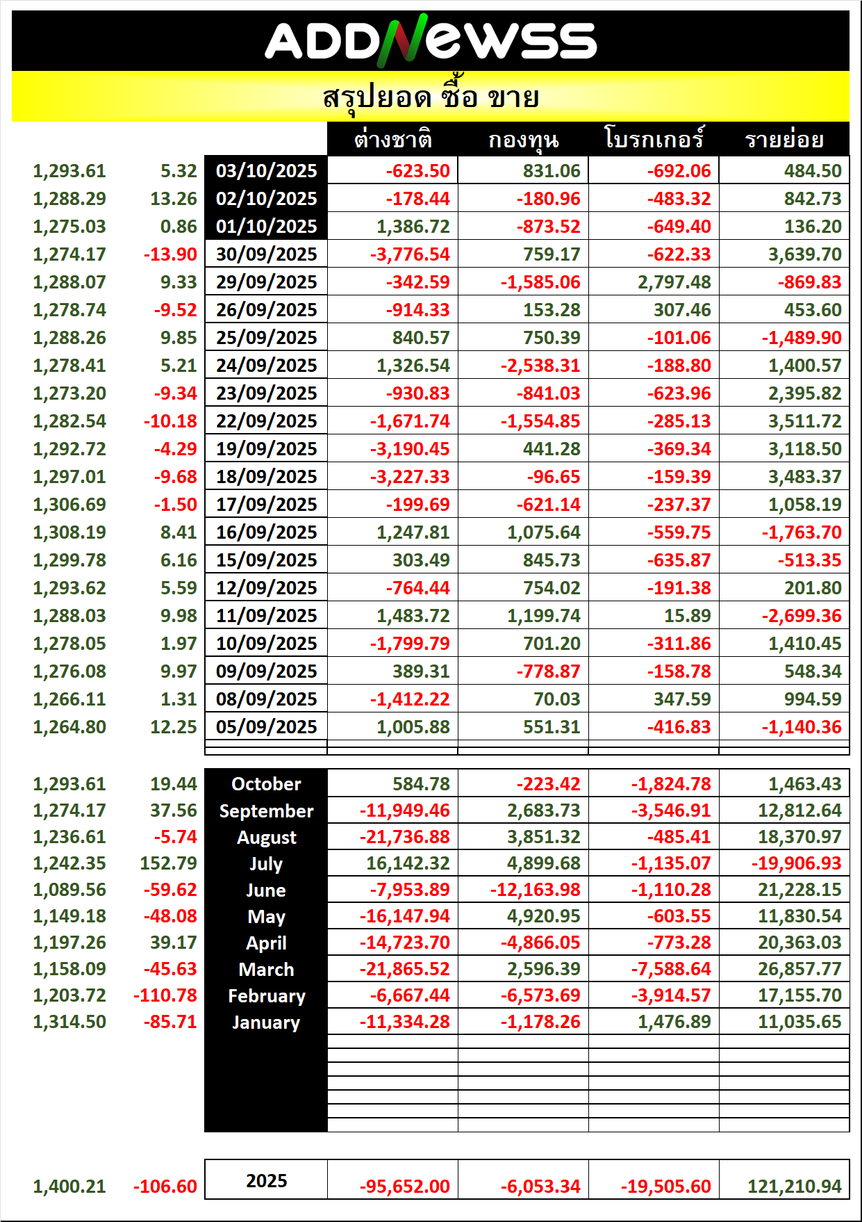🔥🔥สรุปยอด ซื้อ ขาย🟢 🔴 03/10/2025