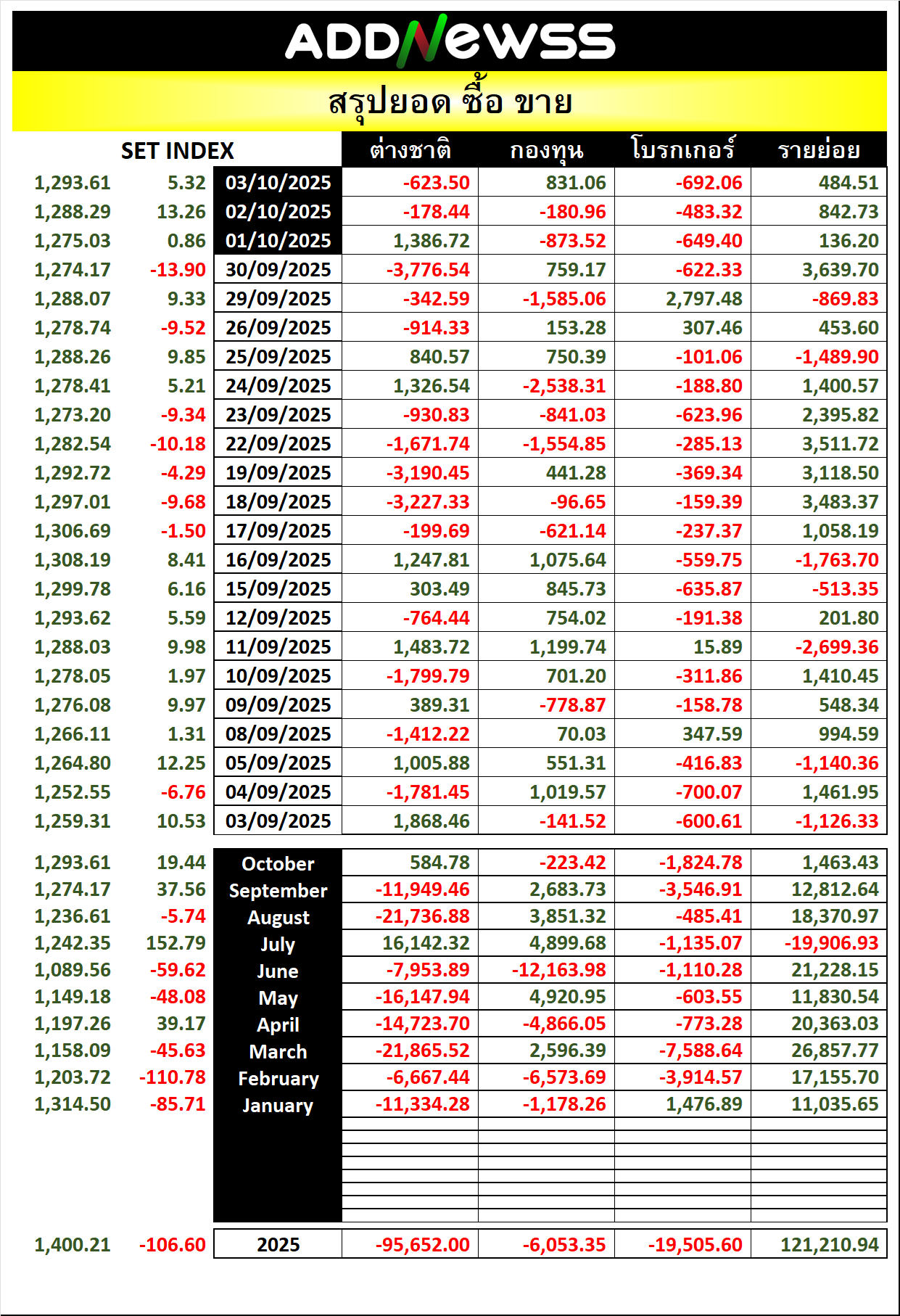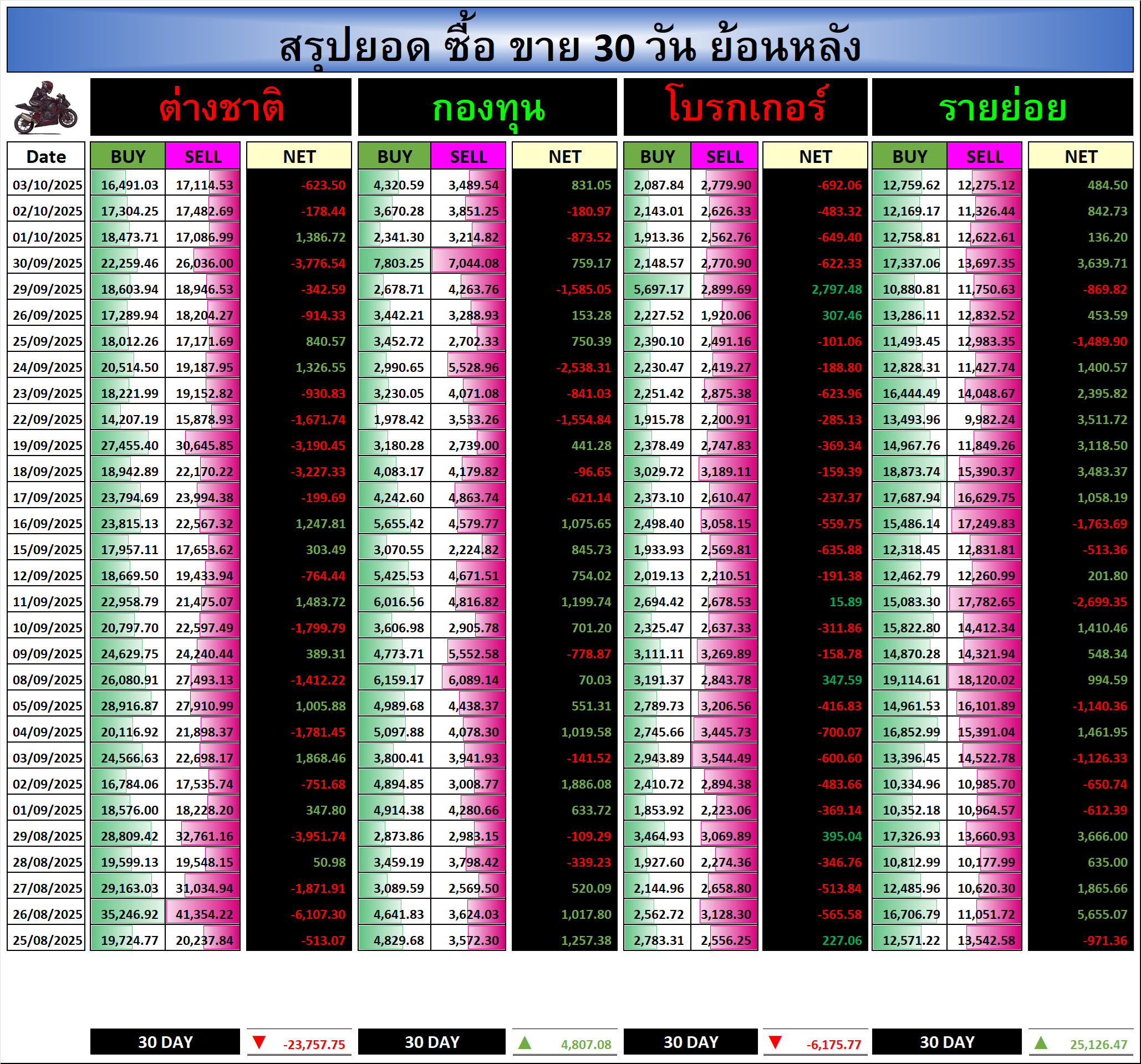 🔥🔥สรุปยอด ซื้อ ขาย🟢 🔴 03/10/2025