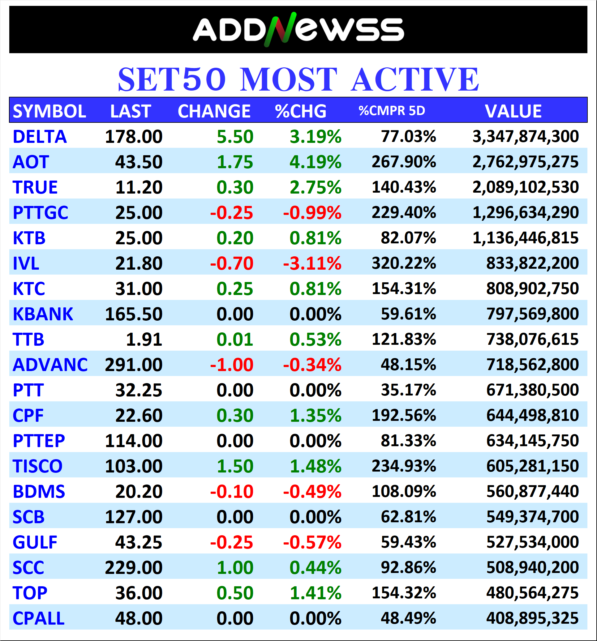 DELTA : 🟢+5.50 ฿3,347,874,300