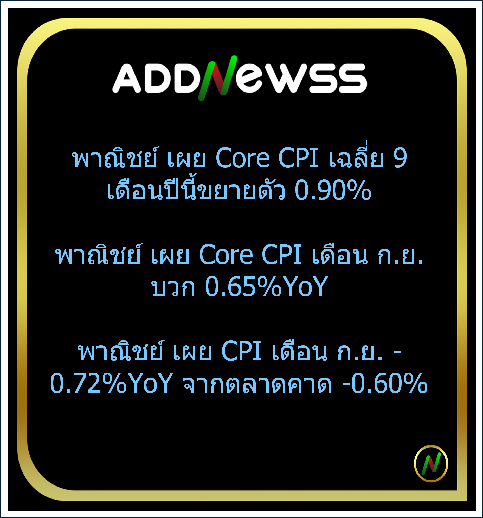 IQ >พาณิชย์ เผย Core CPI เดือน ก.ย. บวก 0.65%YoY