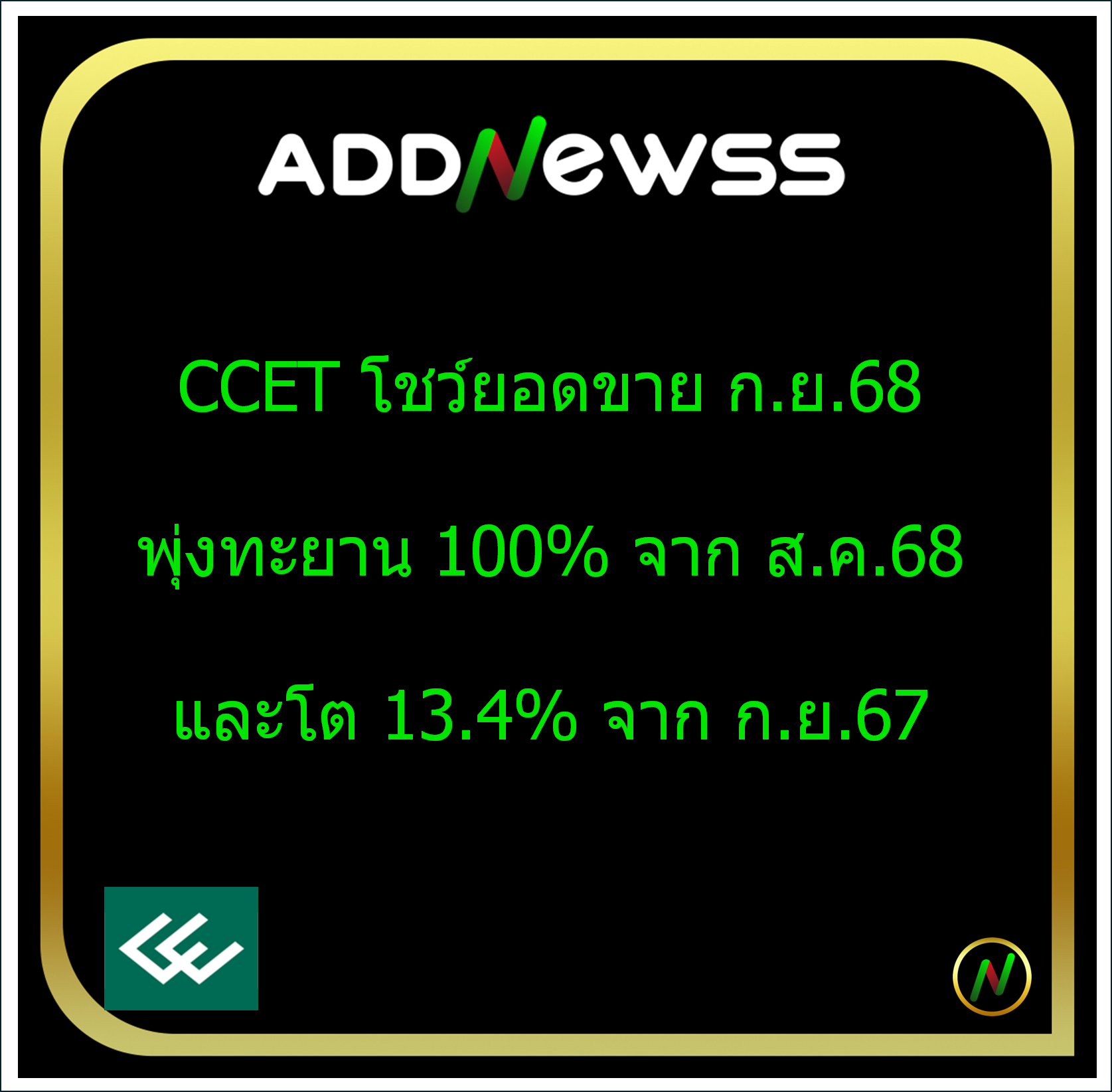 IQ > CCET โชว์ยอดขาย ก.ย.68 พุ่งทะยาน 100% จาก ส.ค.68 และโต 13.4% จาก ก.ย.67