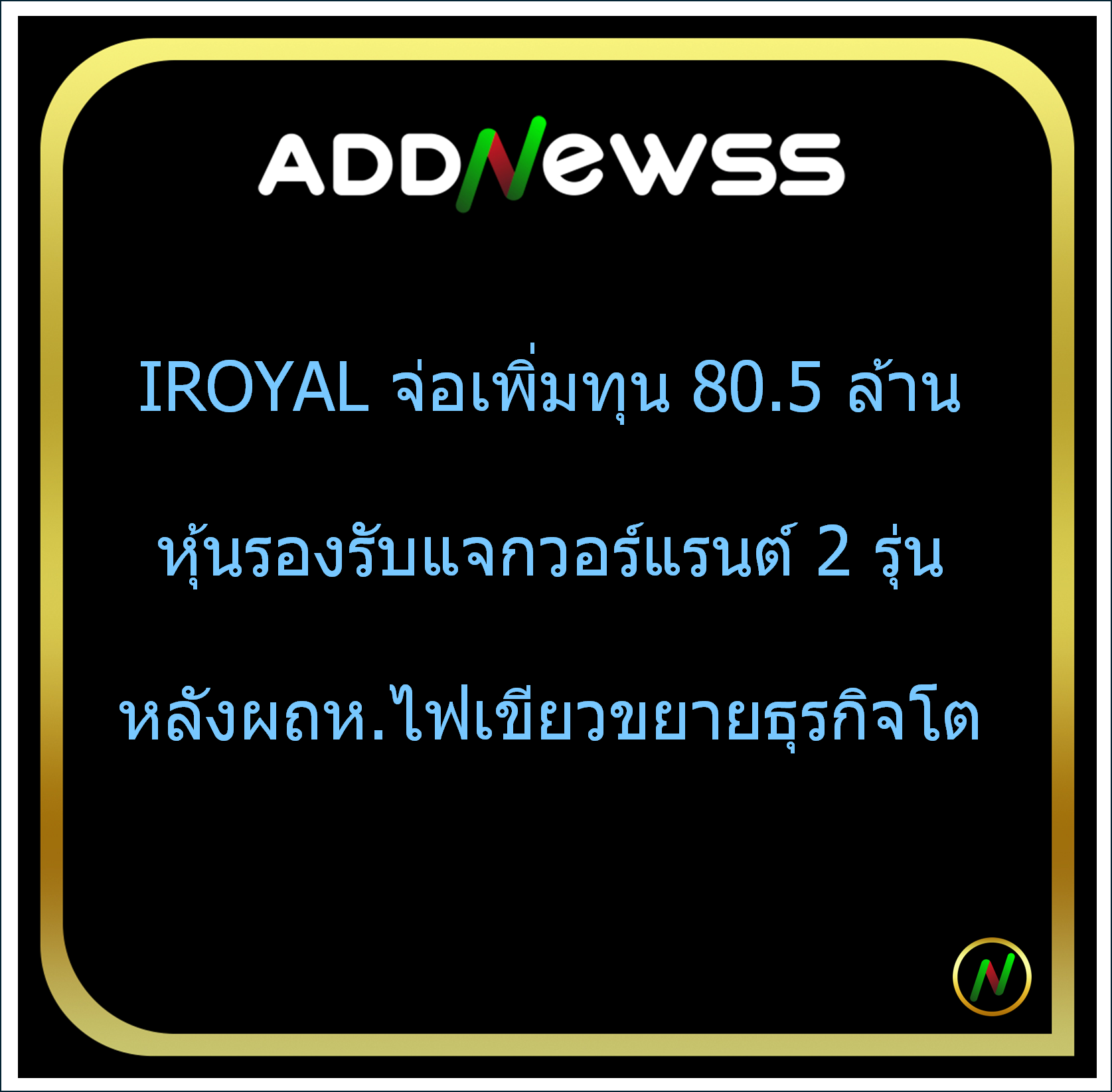 IQ > IROYAL จ่อเพิ่มทุน 80.5 ล้านหุ้นรองรับแจกวอร์แรนต์ 2 รุ่นหลังผถห.ไฟเขียวขยายธุรกิจโต